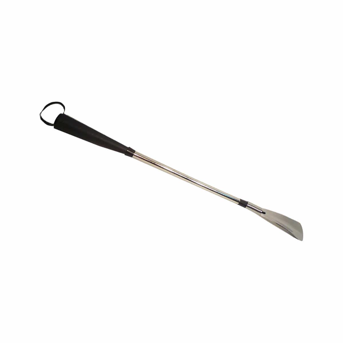 The 24-inch Jockey Shoe Horn is designed as a riding crop style with a spring spoon end. Have trouble sliding into boots and high-fitted shoes? This trusty shoe horn takes the hassle out of fighting with your favorite footwear and provides an easy solution to grabbing your boots and going places!