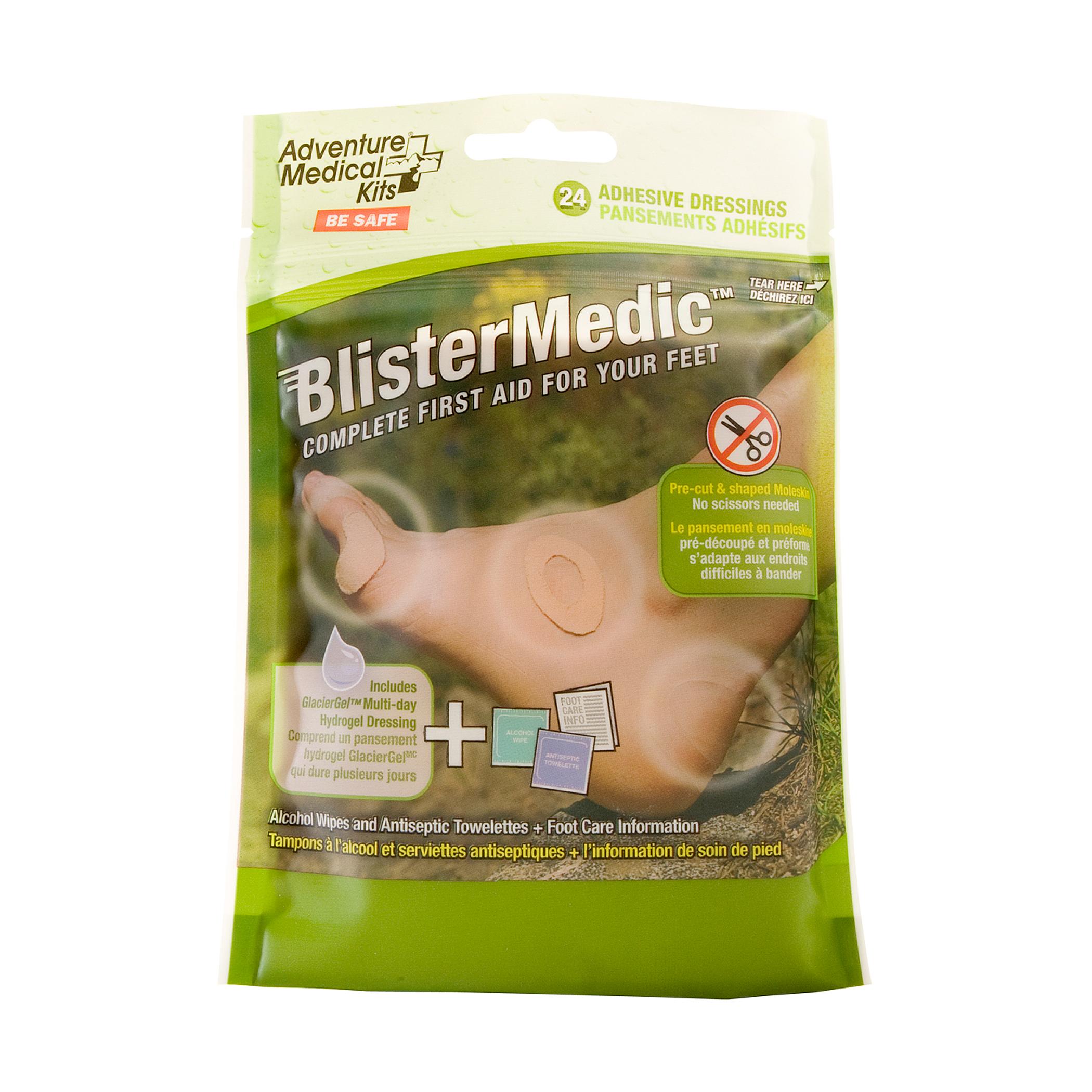 The Blister Medic combines the tried-and-true protection and blister prevention of Moleskin with the advanced relief and healing of Glacier Gel hydrogel dressings. Alcohol pads for skin preparation and antiseptic towelettes for wound cleaning round out the package.