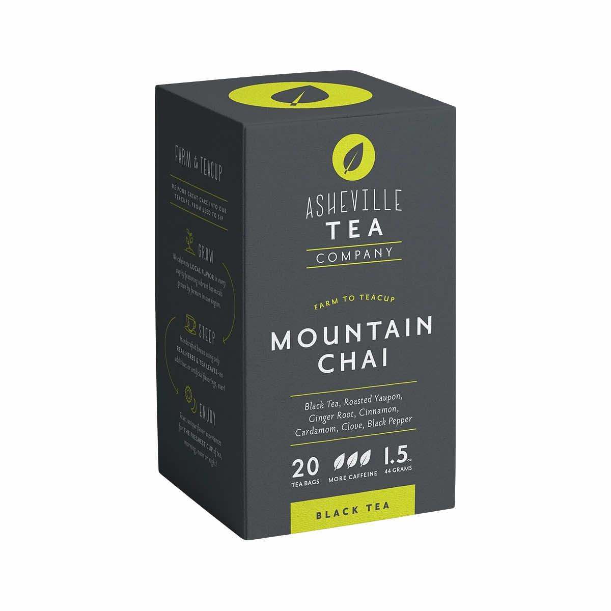 This bold, spiced Mountain Chai Tea from Asheville Tea Company is perfect for mornings on the mountaintop. Blended with yaupon, Asheville Tea Company's only native caffeinated plant, for an exotic harmony of flavors. Serve hot & steamy or chilled over ice with a splash of cream for an out-of-this-world iced chai latte. Enjoy the delightful flavor notes of warmed vanilla, baking spices, and zesty ginger. Asheville Tea Company recommends pairing this tea with camping, bonfires, and mountaintop sunrises.