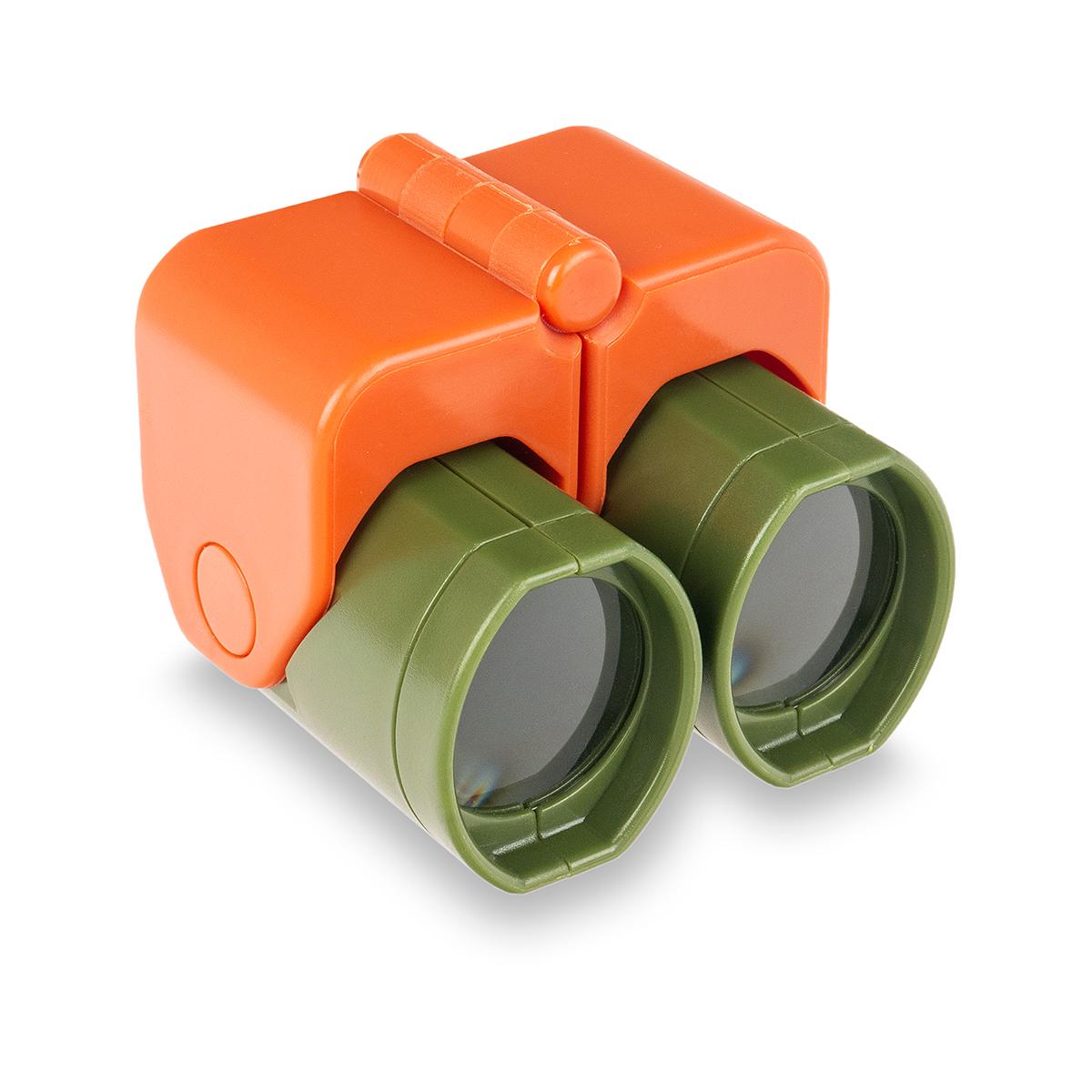 Discover a new field of vision with the Kids' Folding Binoculars from Aurora World! Designed with kids in mind, these binoculars are made from sturdy and safe plastic with a 3-inch length. The foldable construction offers a compact and functional design, while the neck lanyard keeps them at the ready. These binoculars will provide hours of fun and learning, perfect for bird watching, exploring nature, and outdoor activities.
