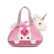 Pink satin and sequins adorn this Unicorn’s 7 inch pet carrier which boasts a face of a unicorn peeking out! Take your unicorn anywhere.