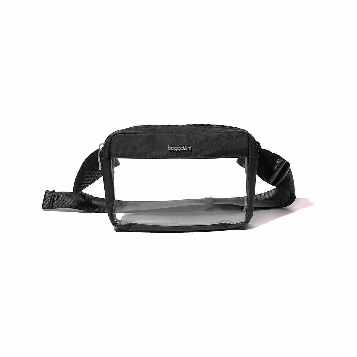 Breeze through security with the Clear Stadium Belt Bag from Baggallini and get to your seat (or front row) as quickly as possible! Designed with most stadium bag requirements in mind, this clear bag comes complete with an adjustable crossbody strap and plenty of room for sunscreen, sunglasses, water bottles, and anything else you could need to make the most of your event.