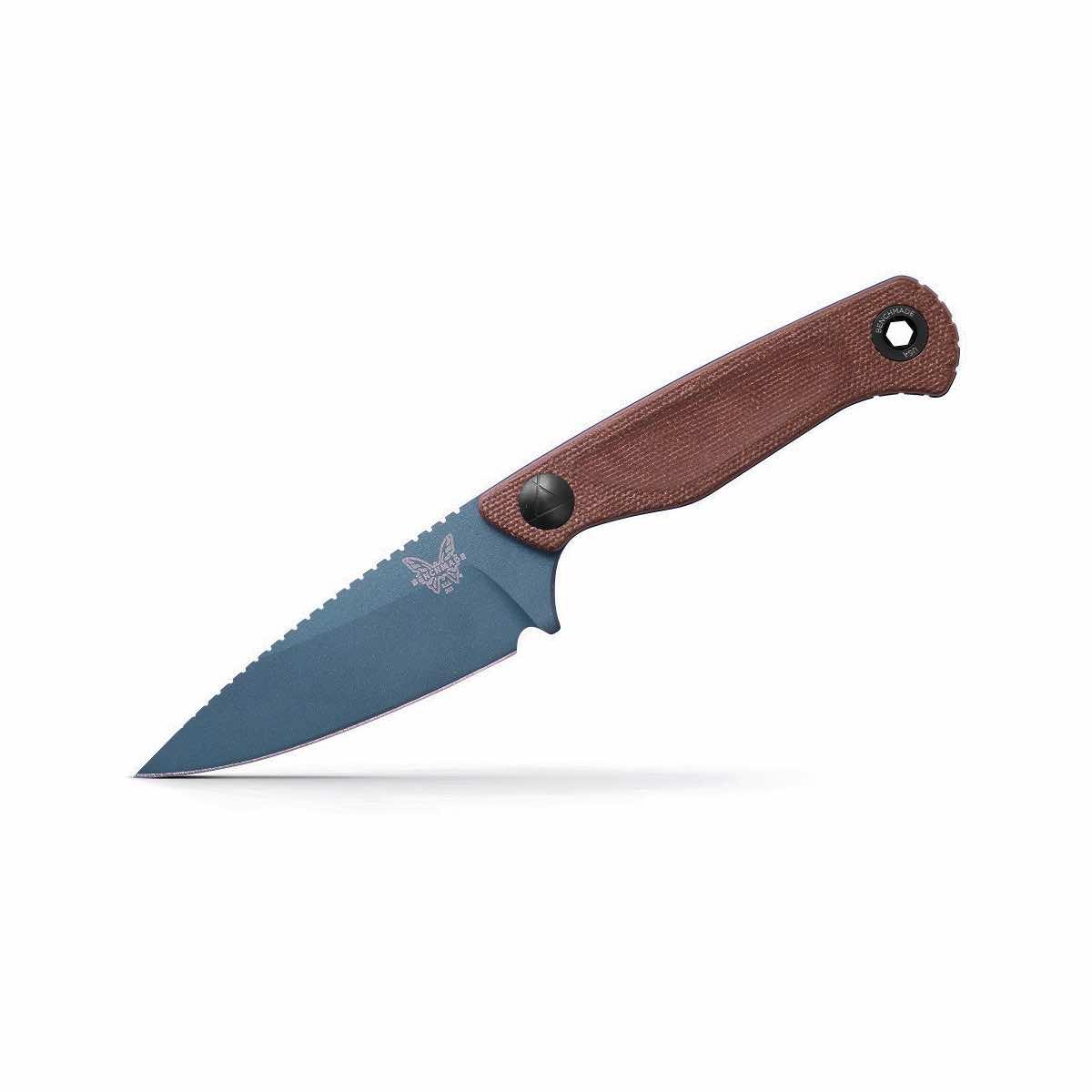 The 203BT-01 Dacian Spear Point Knife from Benchmade is an all-purpose knife crafted for the EDC fixed blade enthusiast. From the trail to the shop, this blade excels as a utility tool that has a sleek look and a wide range of functions! The spear point-style, CPM-Magnacut steel blade is durable and corrosion-resistant with a high grind and a Blue Cerakote finish. This knife offers a durable Brown Canvas Micarta handle with deep finger grooves for a comfortable, secure grip in multiple positions. Keep your blade protected and secure thanks to a molded, crater blue sheath. The Dacian Spear Point Knife is built with peak craftsmanship and provides daily reliability wherever you go!