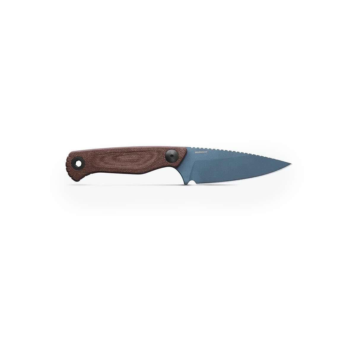 The 203BT-03 Dacian Spear Point Knife from Benchmade is an all-purpose knife crafted for the EDC fixed blade enthusiast. From the trail to the shop, this blade excels as a utility tool with a sleek look, while delivering a wide range of functions! The spear point-style, CPM-Magnacut Stainless Steel blade is durable and corrosion-resistant with a high grind and a Blue Titanium Cerakote finish. This knife offers a durable brown Canvas Micarta handle with deep finger grooves for a comfortable, secure grip in multiple positions. Keep your blade protected and secure thanks to a black leather sheath with a molded Boltaron insert. The Dacian Spear Point Knife is built with peak craftsmanship and provides daily reliability wherever you go!