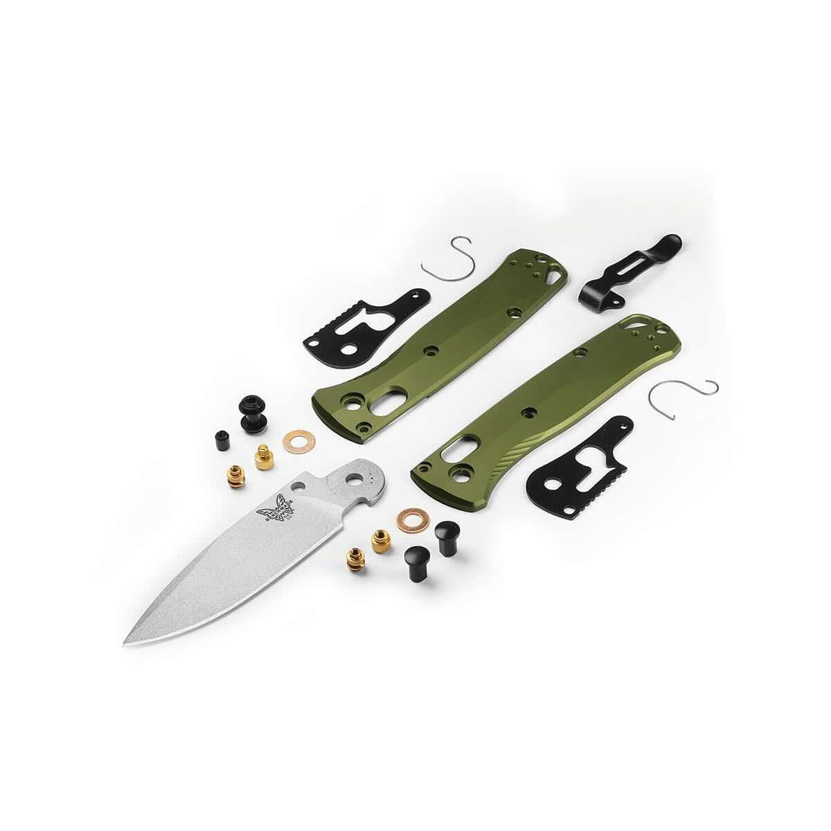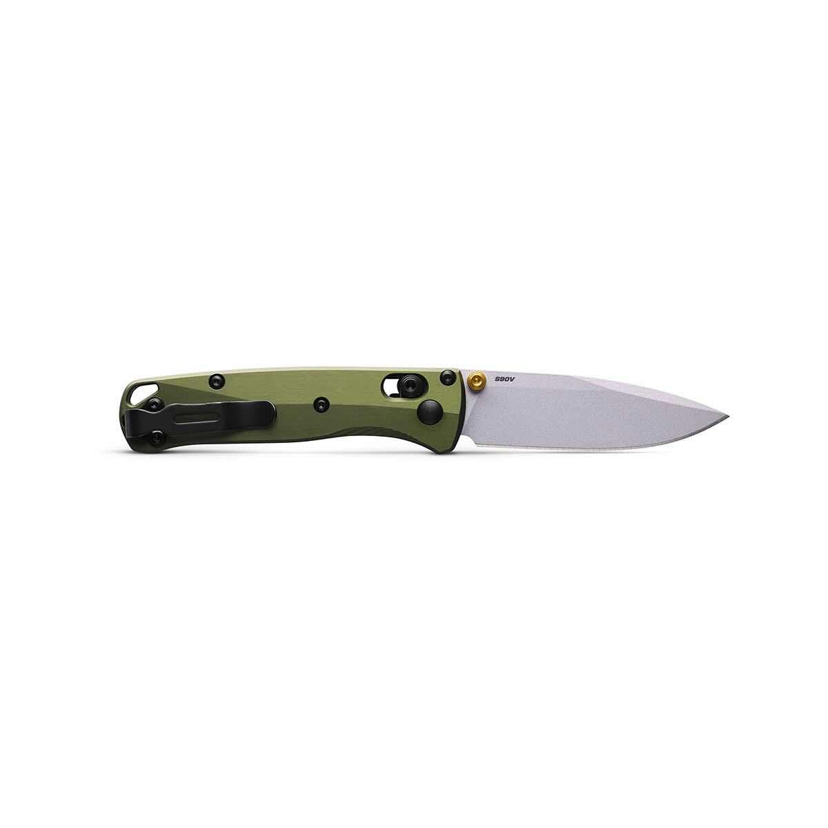 The 533SL-10 Mini Bugout Knife from Benchmade is one of the most popular mini knives in the lineup and one of the most pocketed blades in the EDC community. This slim, lightweight, and durable folding knife has redefined EDC style for versatility anytime and anywhere you need a daily workhorse! This Mini Bugout comes equipped with a drop-point blade made from CPM-S90V Stainless Steel, which has a Cerakote Crushed Silver finish for superior reliability and to make maintenance a breeze. The handle features woodland green 6061-T6 Anodized Aluminum scales for a secure feel. You'll love the gold anodized thumb studs for that pop of color. Get a grip, gear up, and take your EDC to the next level with the 533SL-10 Mini Bugout Knife.