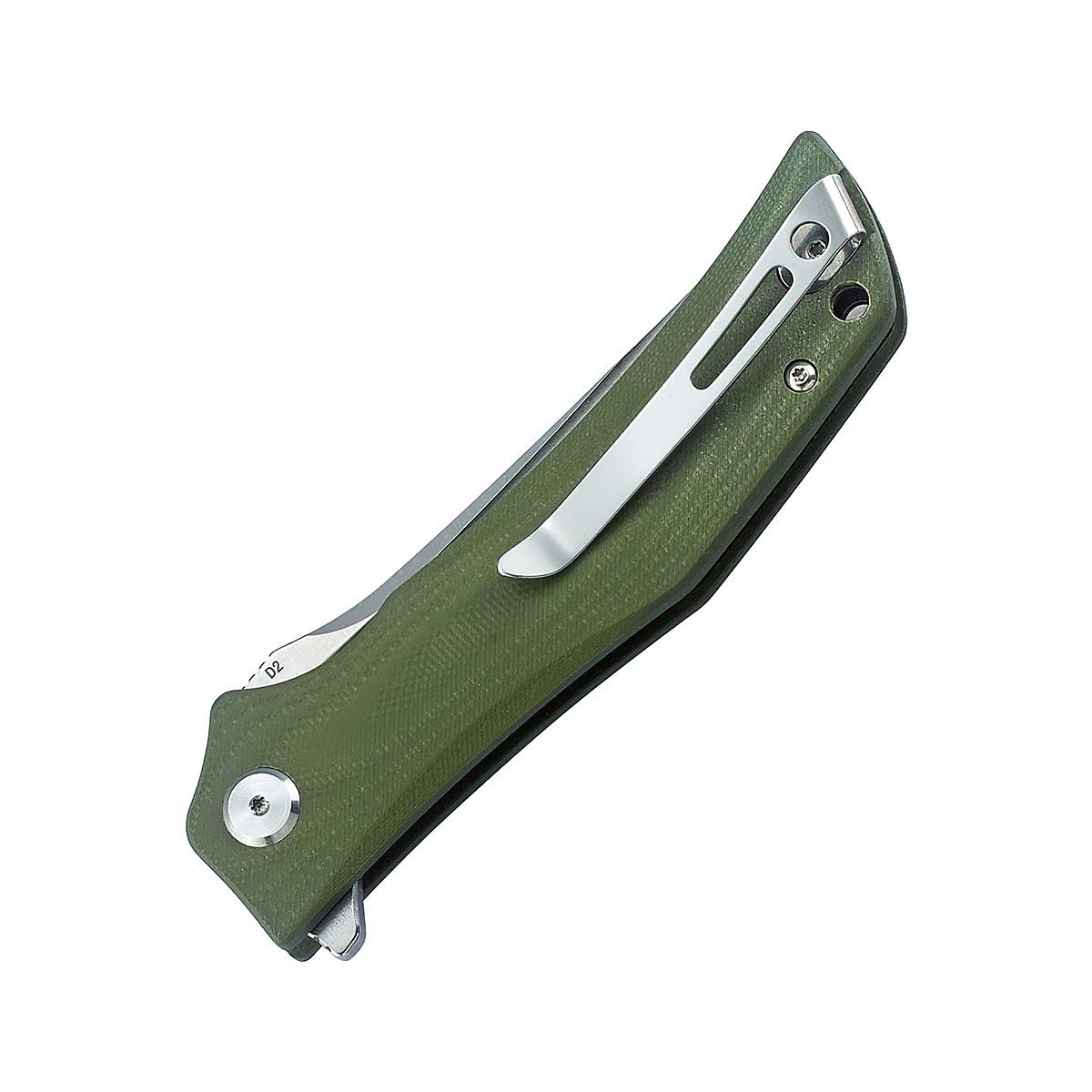 Sleek and beautiful, the Scimitar Knife from Bestech Knives is a streamlined pocket knife that will be your go-to for years to come. This handsome blade was crafted with D2 steel and has a brilliant two-tone finish and extended tang, plus a sturdy G10 handle.