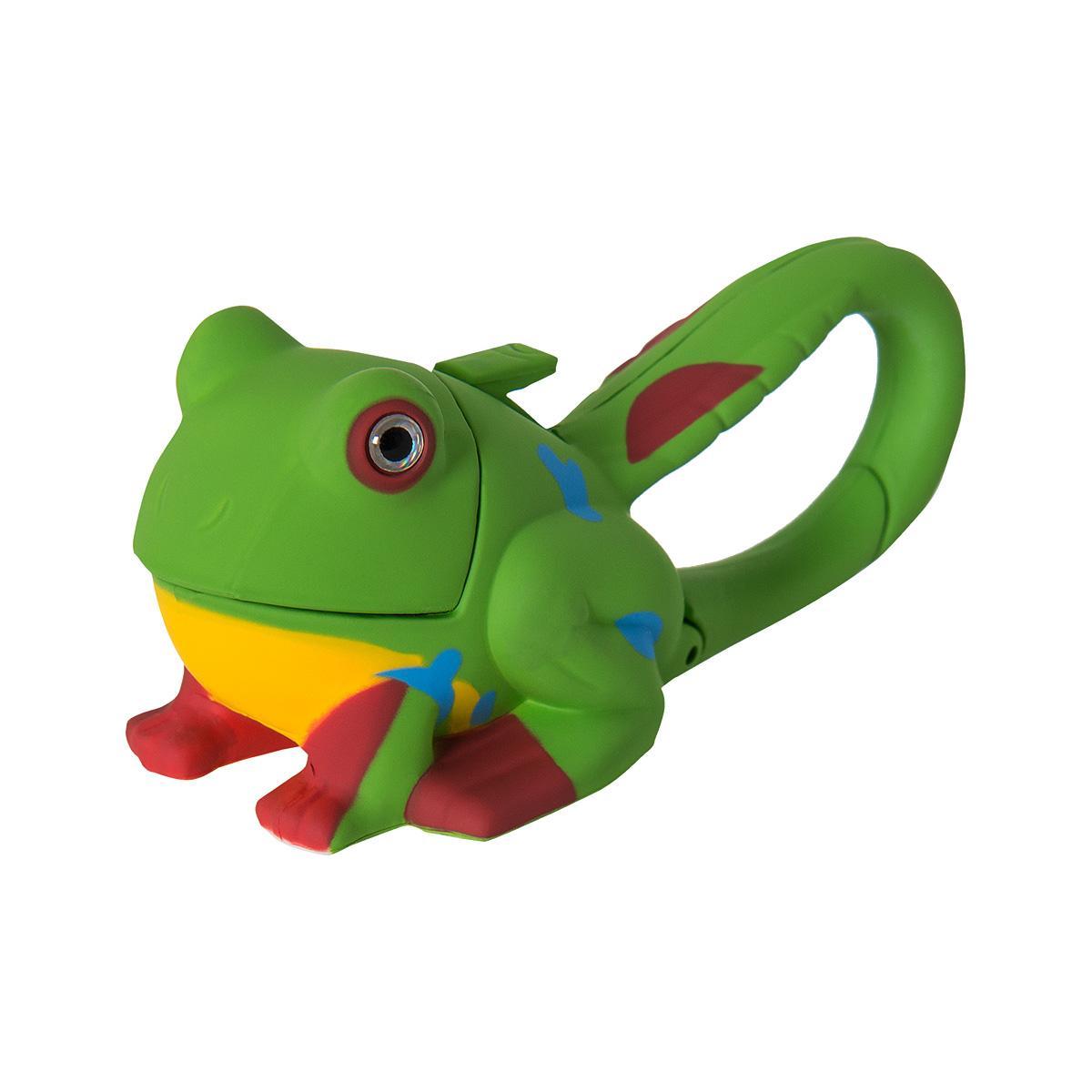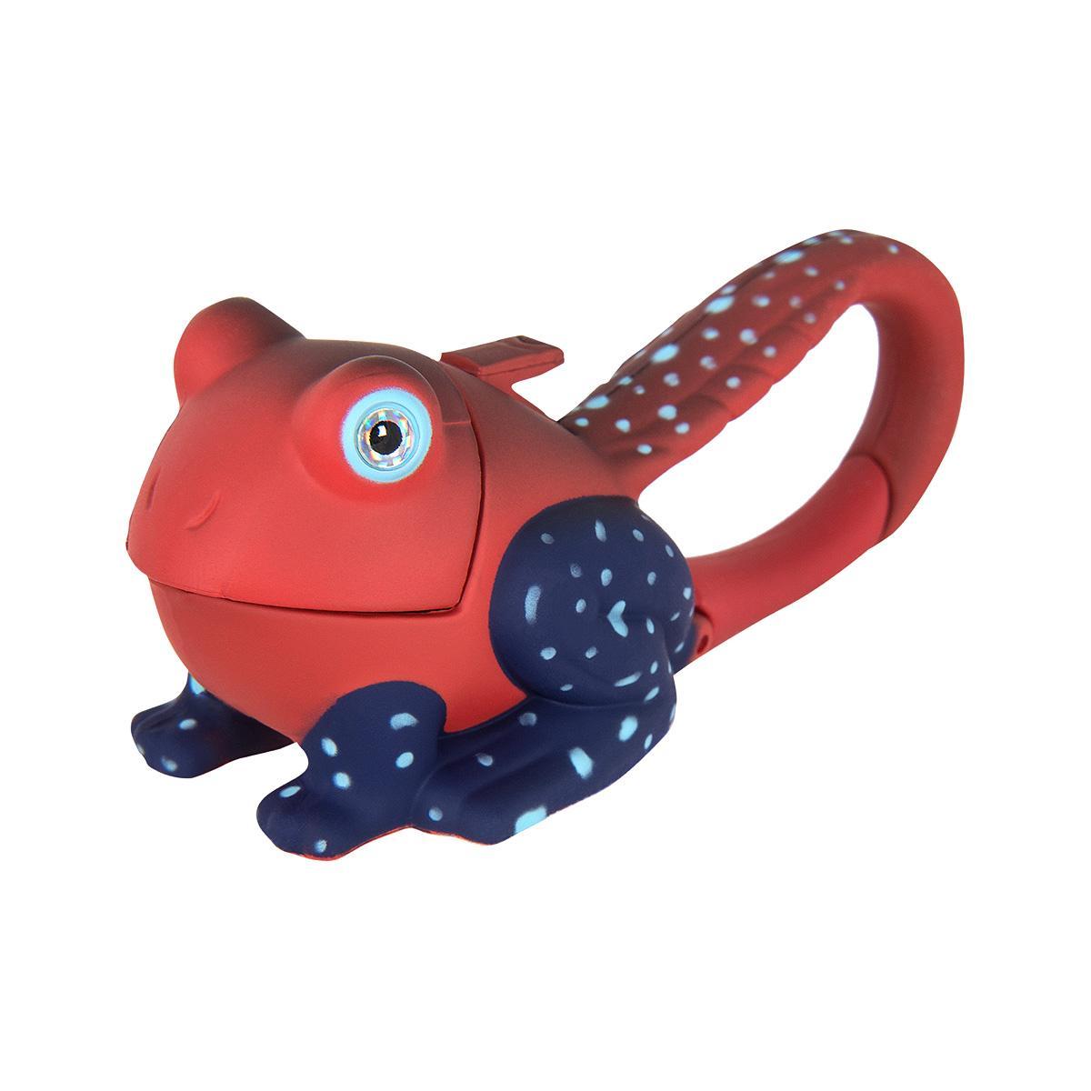 The fun and functional Frog Lifelight has a bright LED light that shines right out of our little buddy's mouth. Just depress the button on the back, watch his mouth open up, and let the light shine. The spring loaded tail-clip attaches conveniently to key rings, back packs, and belt loops.