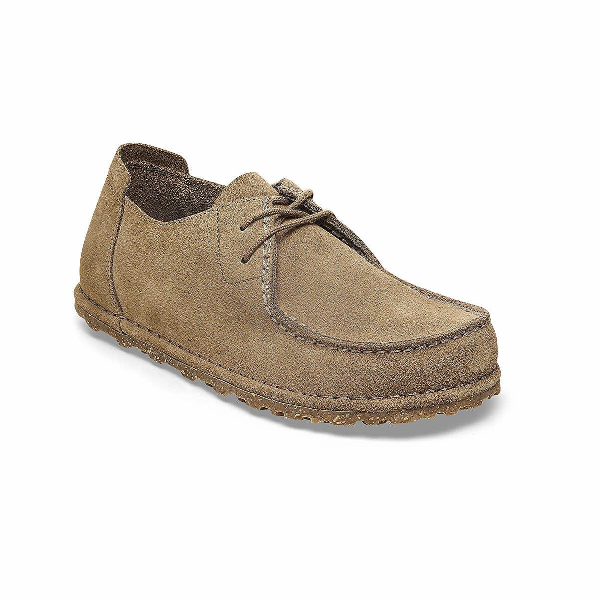 Shake up your wardrobe with the Men's Utti Lace Shoes from Birkenstock! These handsome moccasin-style shoes are classically stylish, with a sophisticated suede upper and adjustable laces, so they will be easy to match with anything in your closet. A high-quality cork and rubber blend sole optimizes your natural walking motion for all-day comfort. Treat your feet with these great shoes!