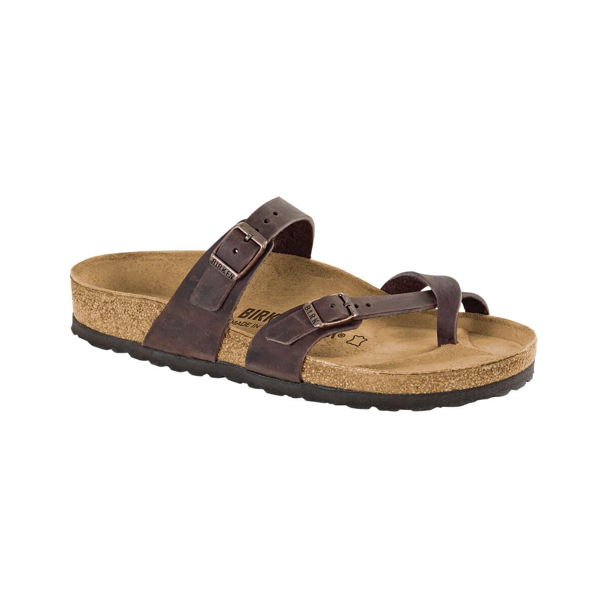 The popular Mayari Sandal from Birkenstock has returned with the same elegant design and comfort you would expect. Featuring two adjustable straps and a toe-loop, this classic Birkenstock ensures a custom fit and features a footbed that conforms to the shape of your foot. A great everyday slip-on for those sunny beach days or a shopping spree with friends.