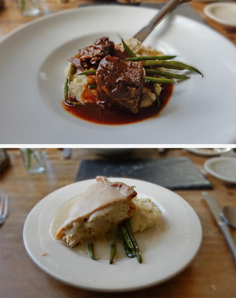 If you’ve worked up an appetite visiting the many historic stops, drop by the Salem Tavern. They serve lunch and supper every day except Monday (brunch on Sundays). The menu is inspired by food commonly found in Salem during the 1800s. You’ll also notice the furniture – the tables and chairs are simple designs that may have been used with “strangers” visiting the community would have dined on. We enjoyed Moravian Chicken Pie and Roast Beef during our visit. The meals were hearty and tasty. Unfortunately, we didn’t get to try their specialty dessert, the Syllabub, but it sure did sound (and look) good. The table next to ours did encourage us to try it on our next trip. It was a popular drink in England in the mid 1500s and was re-introduced in Old Salem by one of its bakers. It features white wine, dry white sherry, lemon zest, lemon juice, sugar, heavy cream, and fresh seasonal berries.