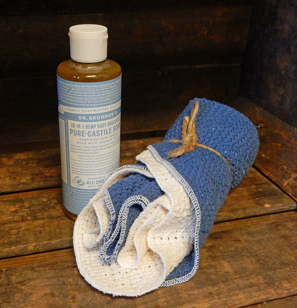 Use a nice homespun cloth (left) to wipe down surfaces.