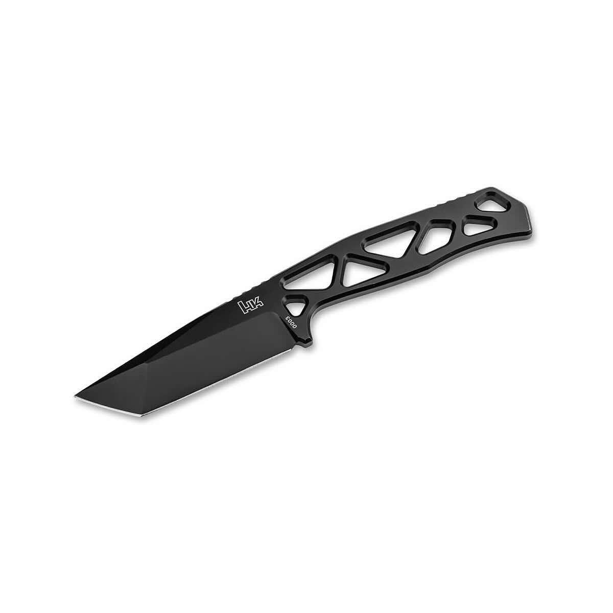 The Heckler & Koch FX01 Knife from Boker offers a raw, rugged, and reliable utility that is designed to be uncompromising for the task at hand. The Tanto-style blade is made from D2 steel with a black titanium coating and improved edge retention. The skeletonized handle offers a secure grip for you to get a great grasp on. The Kydex sheath provides flat, moisture-resistant storage to keep your gear and knife protected. For adventures on the trail or days in the shop, reach for the Heckler & Koch FX01 Knife for superior construction you can depend on.