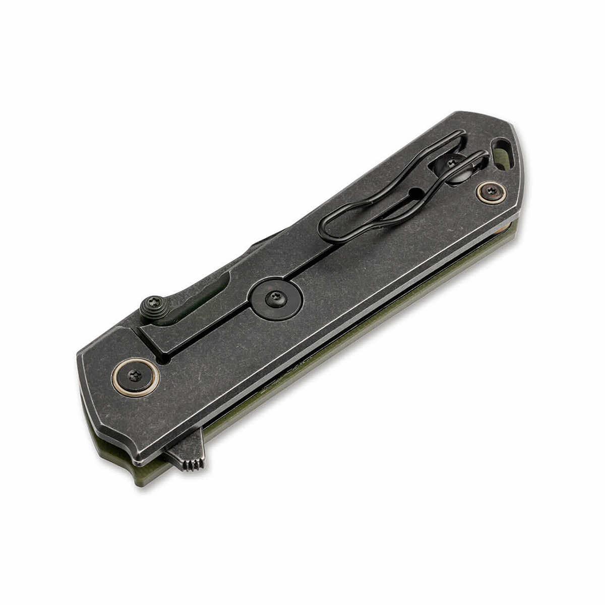 With the design of the Kihon Assisted OD Folding Knife from Böker, the American custom knifemaker Lucas Burnley channels the idea of the Japanese Kihon. The term originally encompasses the fundamentals and basic techniques of Japanese martial arts, which Burnley implements down-to-earth in solid everyday knives. This knife's features and straightforward design bear witness to its high practical suitability and give it an ideal basis for everyday cutting work. The ball-bearing Harpoon blade made of D2 has a dark stonewash finish and opens with spring support via a flipper or thumb stud. The stainless steel Framelock, also with a dark stonewash finish, reliably secures the blade and is also equipped with a Hinderer Lock-Stop. The non-slip handle is covered with textured G10 on the front and is comfortable to hold. Gold-colored anodized rings around the blade axis screw and the handle screw set offer clean, decorative accents. Stop into your nearby Mast General Store's Knife Shop and see the beauty and function of this amazing knife for yourself.