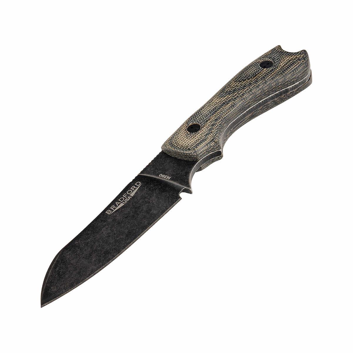 The Guardian 3 Sheepsfoot Knife from Bradford Knives is stunning, straightforward, and will amaze you with its craftsmanship and quality! The 3.5-inch Sheepsfoot-style blade is made from Bohler M390 steel and has a sleek nimbus textured finish. The grippy 3D camo micarta handle feels fantastic and provides a secure grip for any project. The unique camo print adds personality and detailed style. This durable fixed-blade knife includes a leather sheath for easy storage. From the backcountry to the backyard, you'll be reaching for this trusty tool day in and day out!