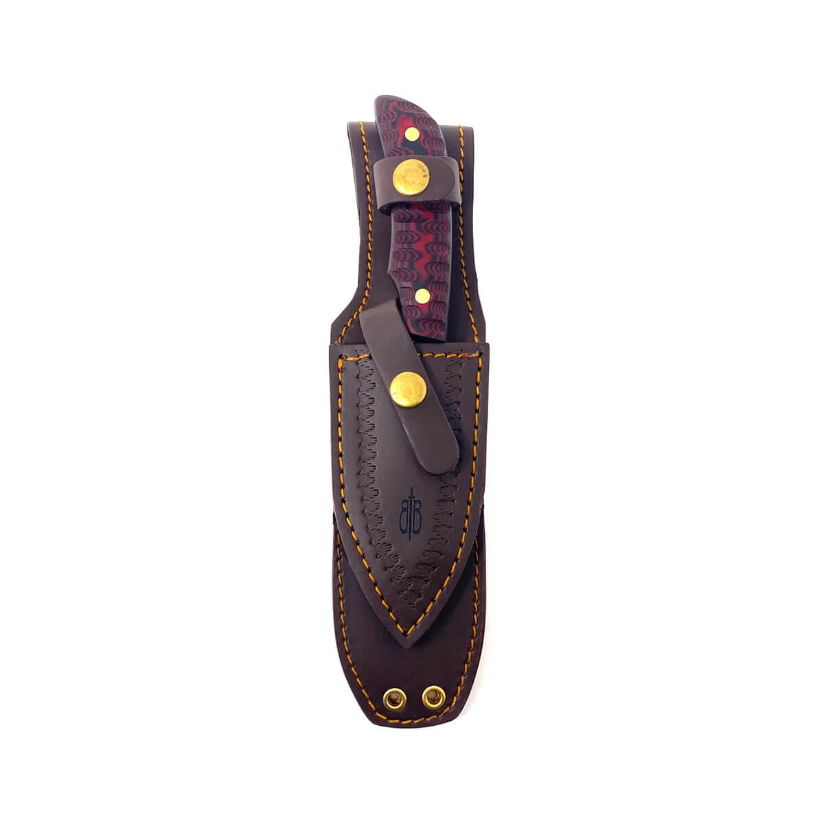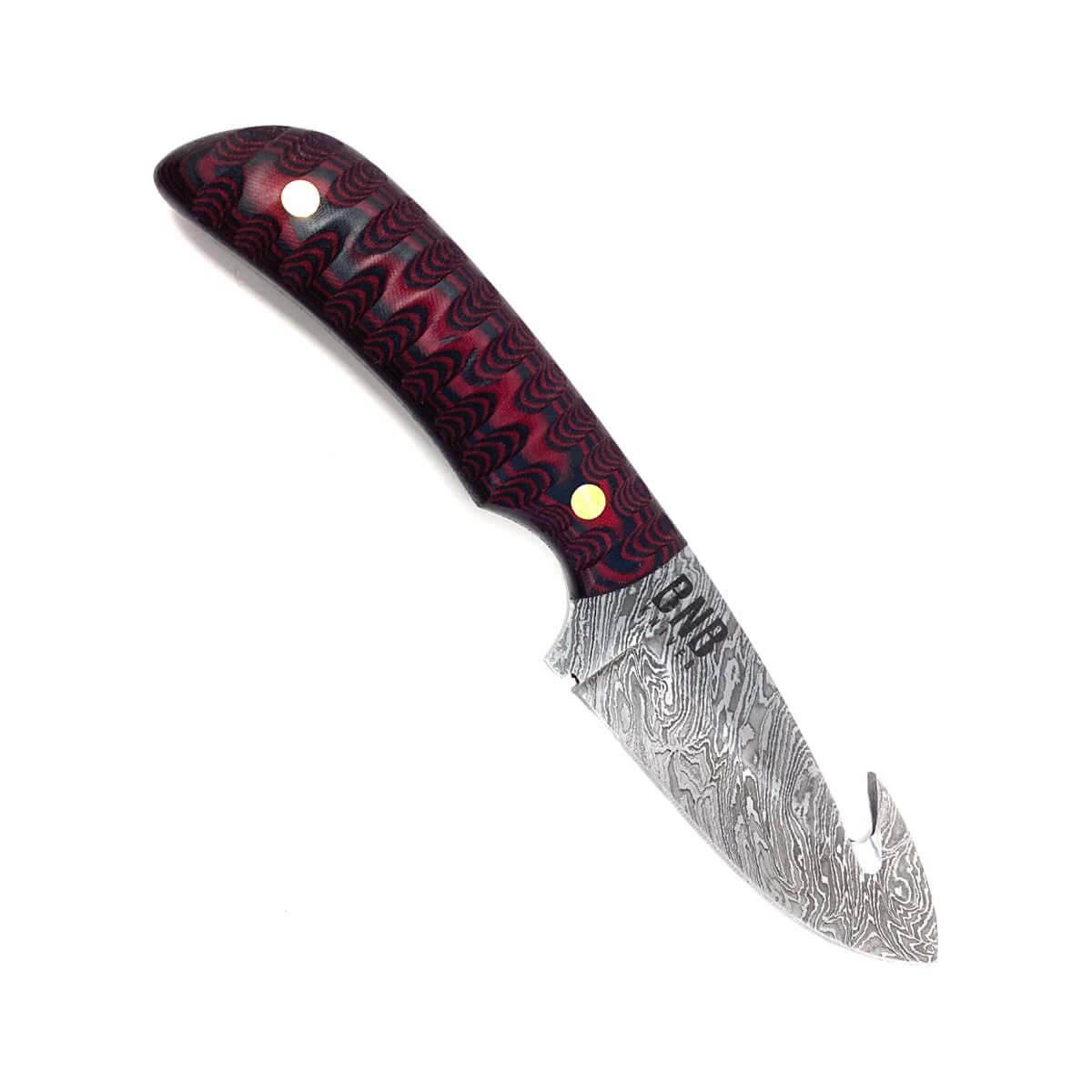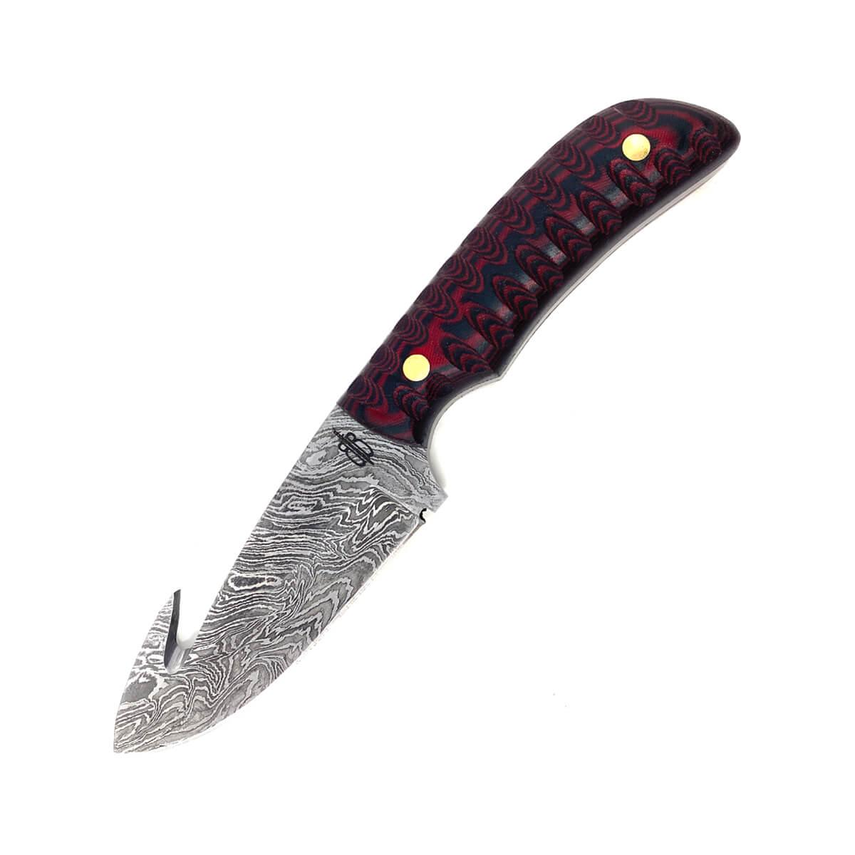 This Damascus Guthook Hunter Knife from Buck N Bear Knives offers a contoured G10 handle and a 1095 (15N20) Damascus Blade. This knife offers a large blade with a gut hook on the spine for hunting and fishing applications. Ergonomic handle due to scaled g10. It comes equipped with a molded leather sheath for vertical belt carry.