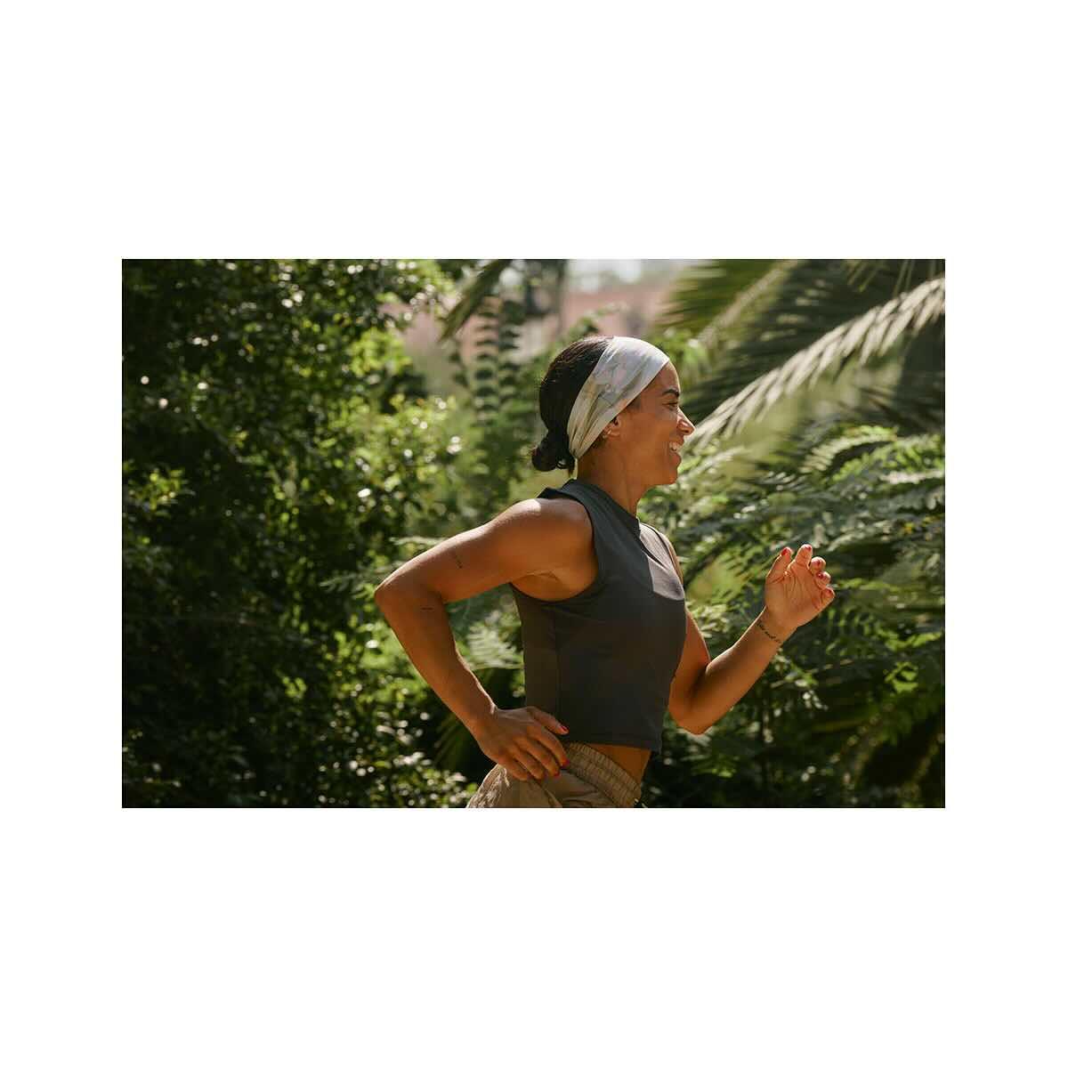 The Buff CoolNet UV Ellipse Headband is tapered, lightweight, and made from recycled plastic bottles. Designed for keeping hair in place before, during, or after sweaty workouts. With hair and sweat securely away from your face, you can jump into the workout of the day with full focus and energy. The tiny silicone drops will keep it in place no matter what. Wear it techy or trendy, flip it, and have two looks in one.
