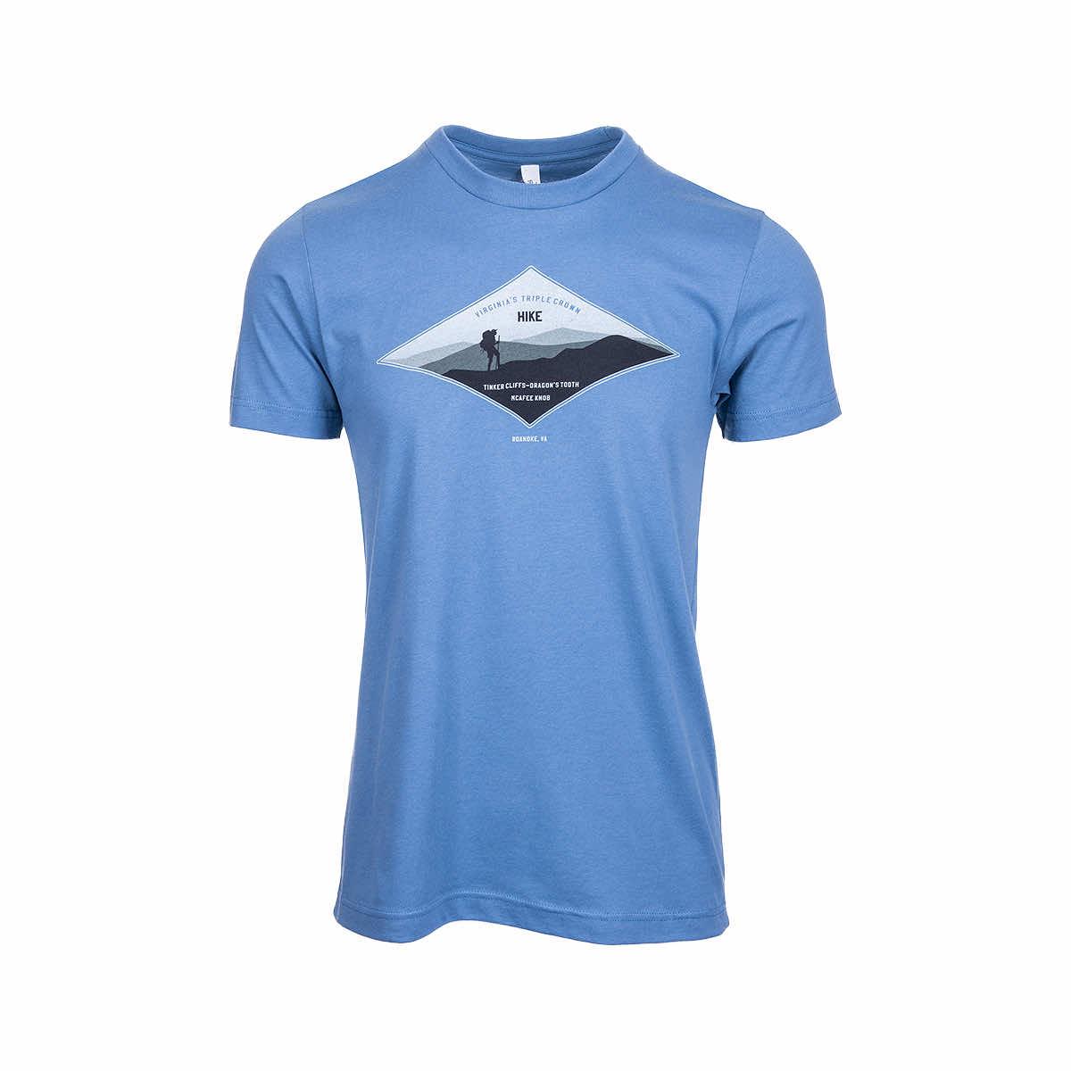 For those that have conquered the journey of the Triple Crown Loop: Dragon's Tooth, McAfee Knob, and Tinker Cliffs celebrate your accomplishment in comfort with this Virginia's Triple Crown Diamond Short Sleeve T-Shirt from Bum Wraps. This short-sleeve t-shirt is made from a soft cotton fabric and features a graphic on the front representing Virginia's esteemed Triple Crown along the Appalachian Trail.