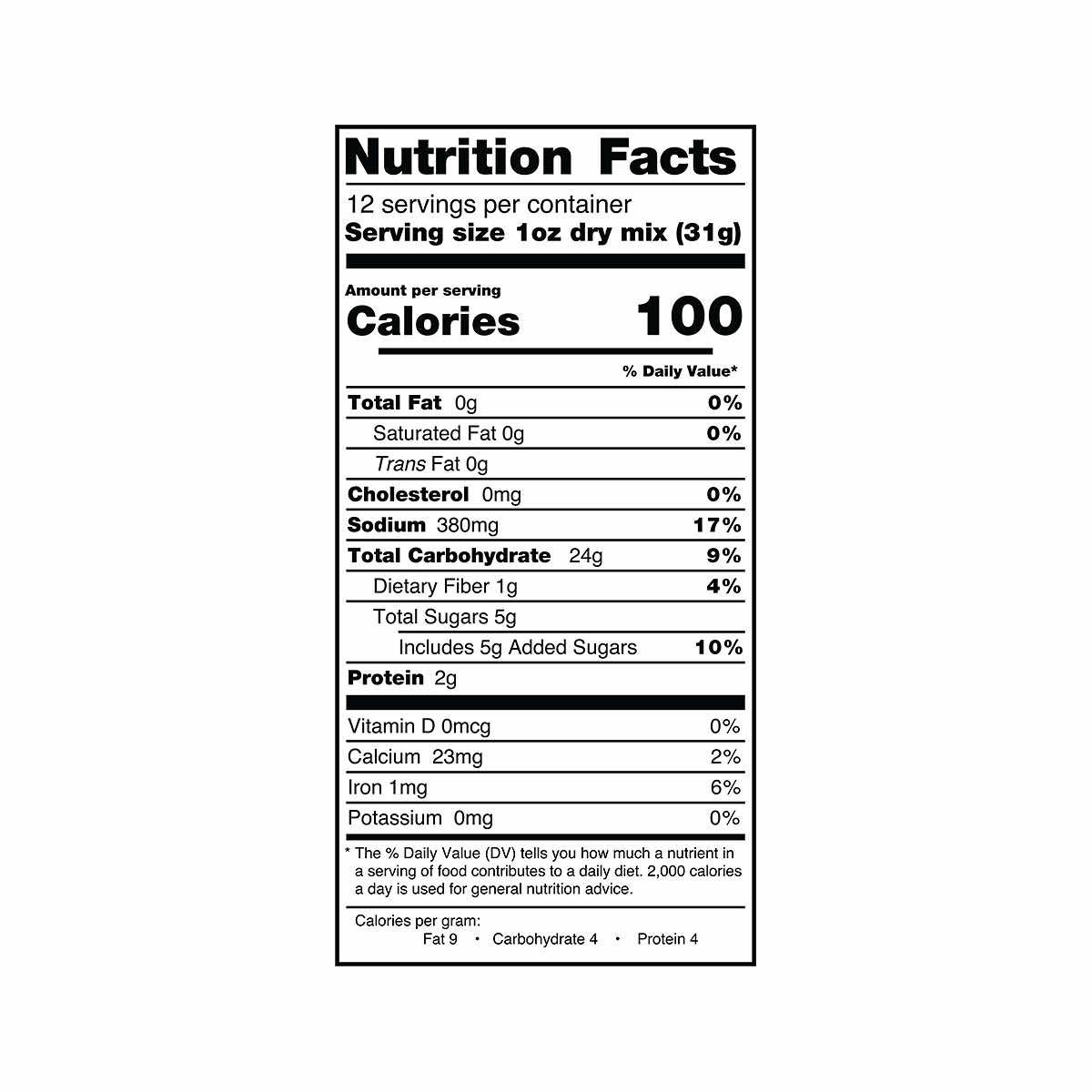 - Serving size: 1 ounce (31g) of dry mix, 12 total servings