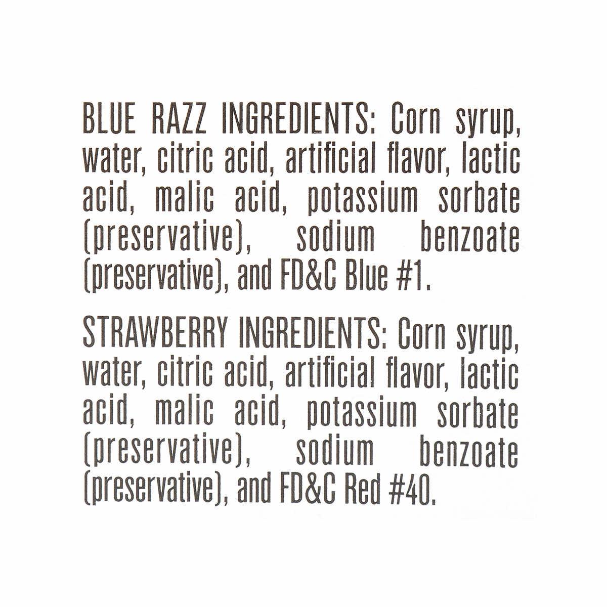 - 2 flavors: Strawberry and Blue Razz
