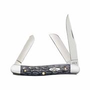 The Crandall Jigged Gray Bone Medium Stockman Knife from Case Knives highlights the combination of Gray Bone grips with carbon steel blades. This new series features Case's Crandall jigged handle style; a new twist to an ageless favorite. Stockman Knives pack three blades in a convenient but very practical pocket knife. The Clip-style and Sheepfoot blade sit on the pocket end while the Pen blade sits on the cap end. The Clip-style blade is a multi-purpose blade for detail work. The Sheepfoot blade is for carving and clean cuts. The Spey blade is great for light work. This knife is constructed with Carbon (CS) steel with edge-holding ability and easy re-sharpening. Carbon steel is less resistant to rusting, pitting, and discoloration than stainless steel. Case recommends keeping a thin film of oil on the blade to maintain the finish. This ensures that your knife will be around for future generations to enjoy.