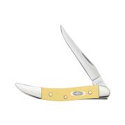 The Small Texas Toothpick Yellow Synthetic Chrome Vanadium Knife from Case Knives is a smaller version of the Medium Texas Toothpick features a Long Clip blade and has a small design that fits well into pockets or purses. The Clip blade is commonly used as a multi-purpose blade and preferred for detail work. This knife is constructed with our Chrome Vanadium (CV) steel. Some knife lovers will settle for nothing less than Chrome Vanadium blades, since this special formula of alloyed steel is the “original” Case blade steel. Case Chrome Vanadium blades are known for their edge-holding ability and easy re-sharpening.