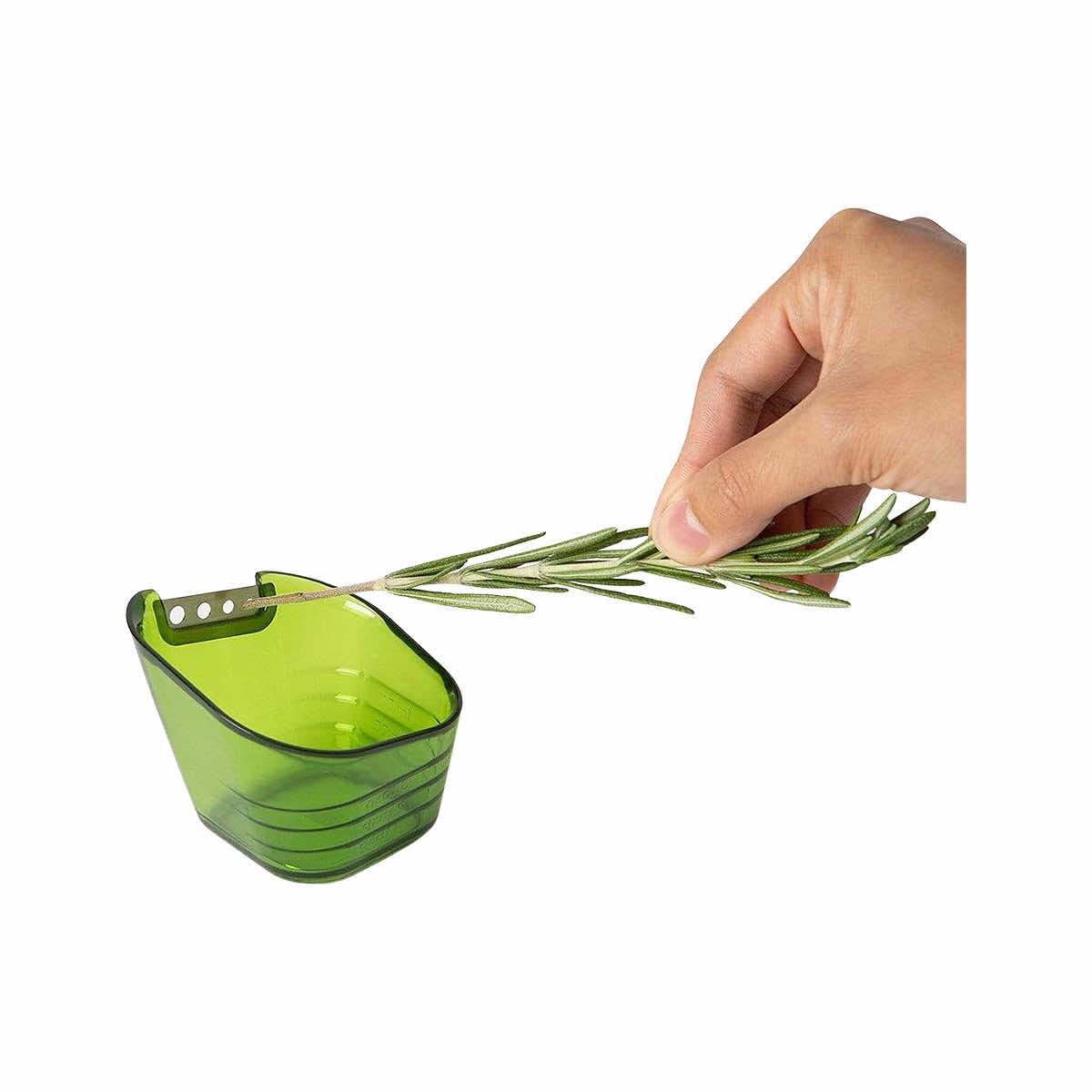 - Easily strips, collects, and measures herbs