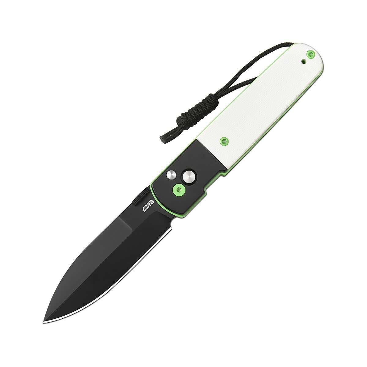 Sharp in function and features, the Locust Spear Point Folding Knife from CJRB is an impressive EDC knife that has a slim, compact design and a low-profile pocket fit. The Spear Point blade is made from AR-RPM9 steel with a flat grind and a black PVD finish. The handle is made from black PVD steel with a black or white G10 inlay for a dependable grip. The ceramic ball pivot assembly and the button locking system offer a smooth opening and a secure safety mechanism. Geared for EDC, the Locust Spear Point Folding Knife offers day-in and day-out utility!