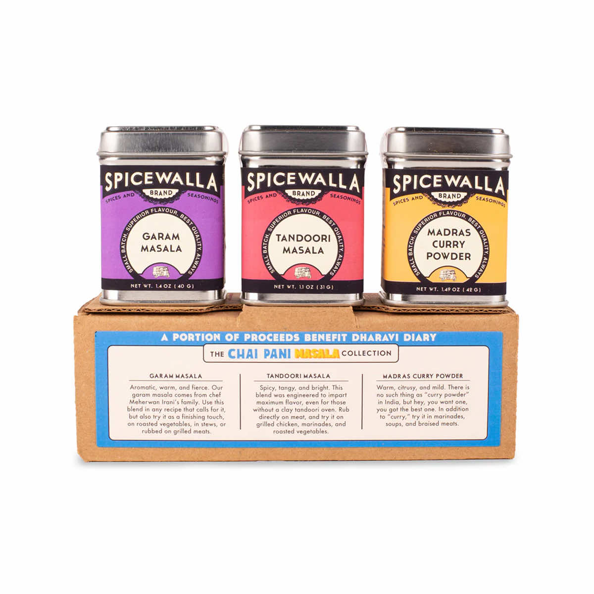 The 3-pack of the Chai Pani Masala Spice Collection from Spicewalla is the most widely known of the Indian Masalas, and for good reason. This collection takes the intimidation out of Indian cooking and delivers delightful seasonings for marinades, rubs, and sauces to take your meal to a new level of flavor. The Garam Masala offers an aromatic, warm, and fierce blend. The Tandoori Masala provides a spicy, tangy, and bright blend for maximum flavor. Lastly, the Madras Curry Powder is warm, citrusy, and mild for a versatile blend. A masterclass in Indian spice blends, this Chai Pani Masala Spice Collection delivers deep, nuanced flavor.