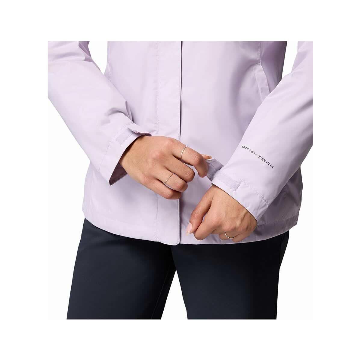 From drizzle to a deluge, the Women's Arcadia II Rain Jacket from Columbia is there for you on your daily commutes or serious hikes. With Omni-Tech™ seam-sealed construction and a soft mesh lining, this jacket is waterproof and breathable. An adjustable storm hood and hem provide a custom fit and extra coverage. The jacket folds up into one of its own zip-up hand pockets for easy storage. From rainy day adventures around town to unexpected downpours, seal out the elements in the Arcadia II Rain Jacket.