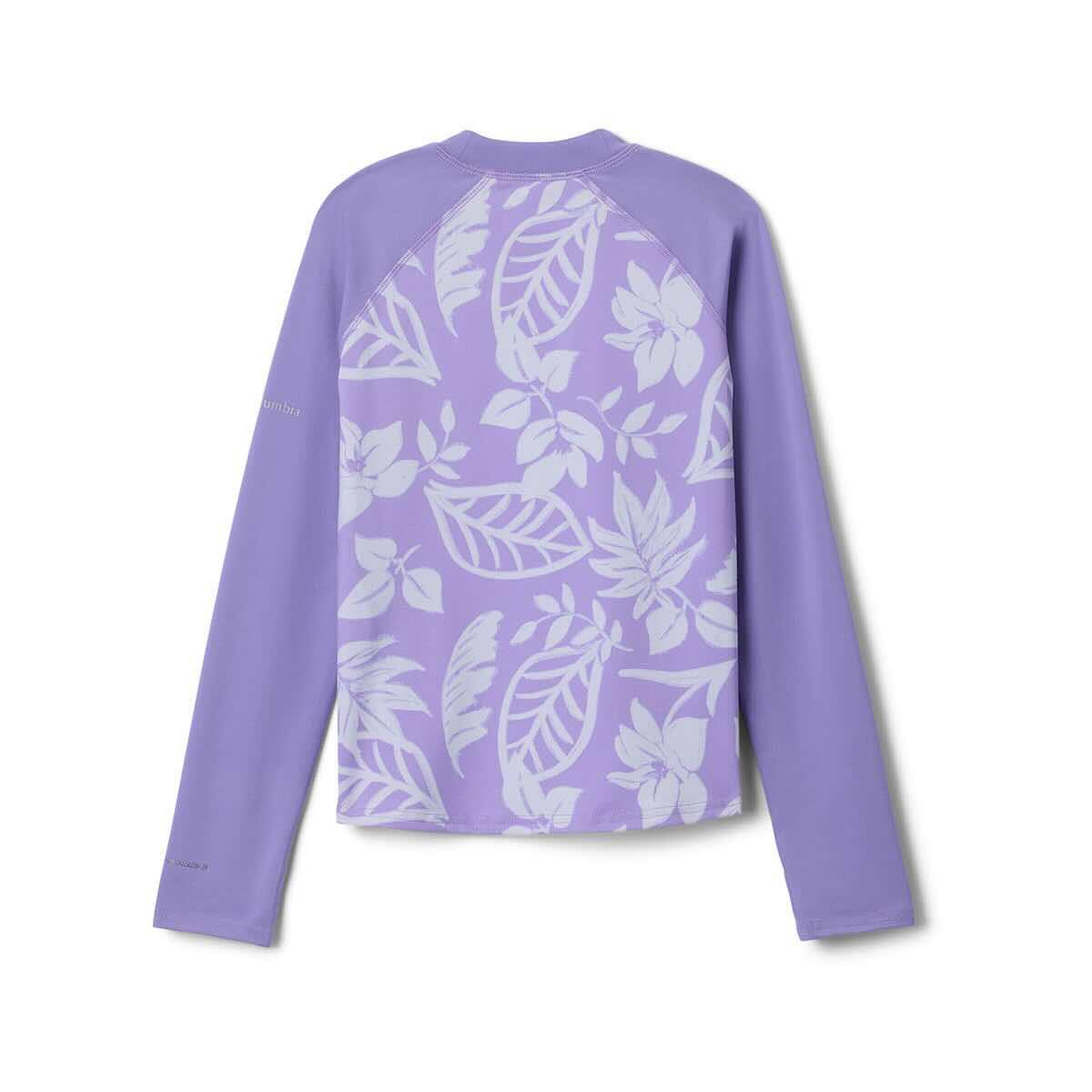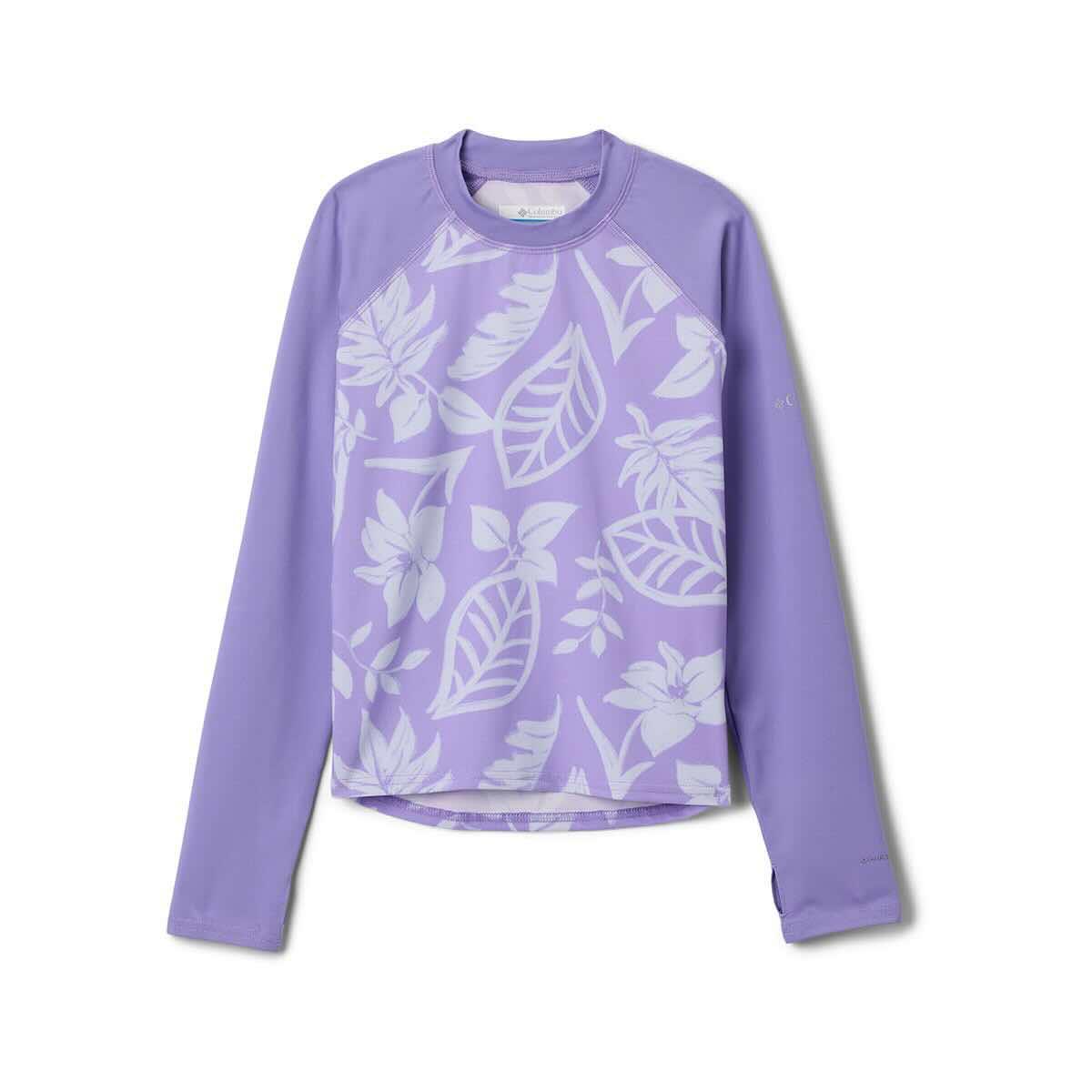 Keep your kiddo covered with the Girls' Sandy Shores Long Sleeve Sunguard Shirt from Columbia Sportswear! This excellent sun protection top is buttery soft and vibrant with built-in UPF 50+ properties that will keep your child safe from harmful rays. Integrated thumbholes and a crewneck design make this long-sleeve shirt just the ticket for all-day comfort while your little one enjoys a lake day. This sunguard shirt is just in time for summer!