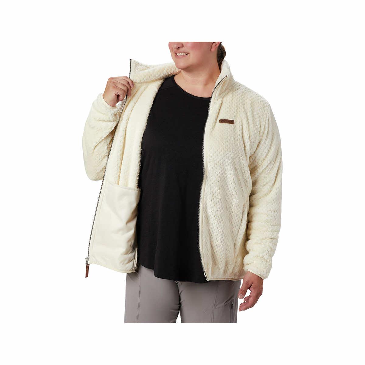 Crafted from a fluffy high-pile fleece inside and out, the Curvy Women's Fire Side II Sherpa Fleece Full Zip Jacket from Columbia feels velvety soft, with microfleece-lined pockets to keep your hands cozy and a full-zip closure to keep the heat close. Start with a hike and finish with s'mores around the campfire in this Sherpa fleece jacket. Banish the chilly temperatures when you zip it up and enjoy an evening outdoors in the oh-so-delightful Fire Side II Sherpa Fleece Jacket.