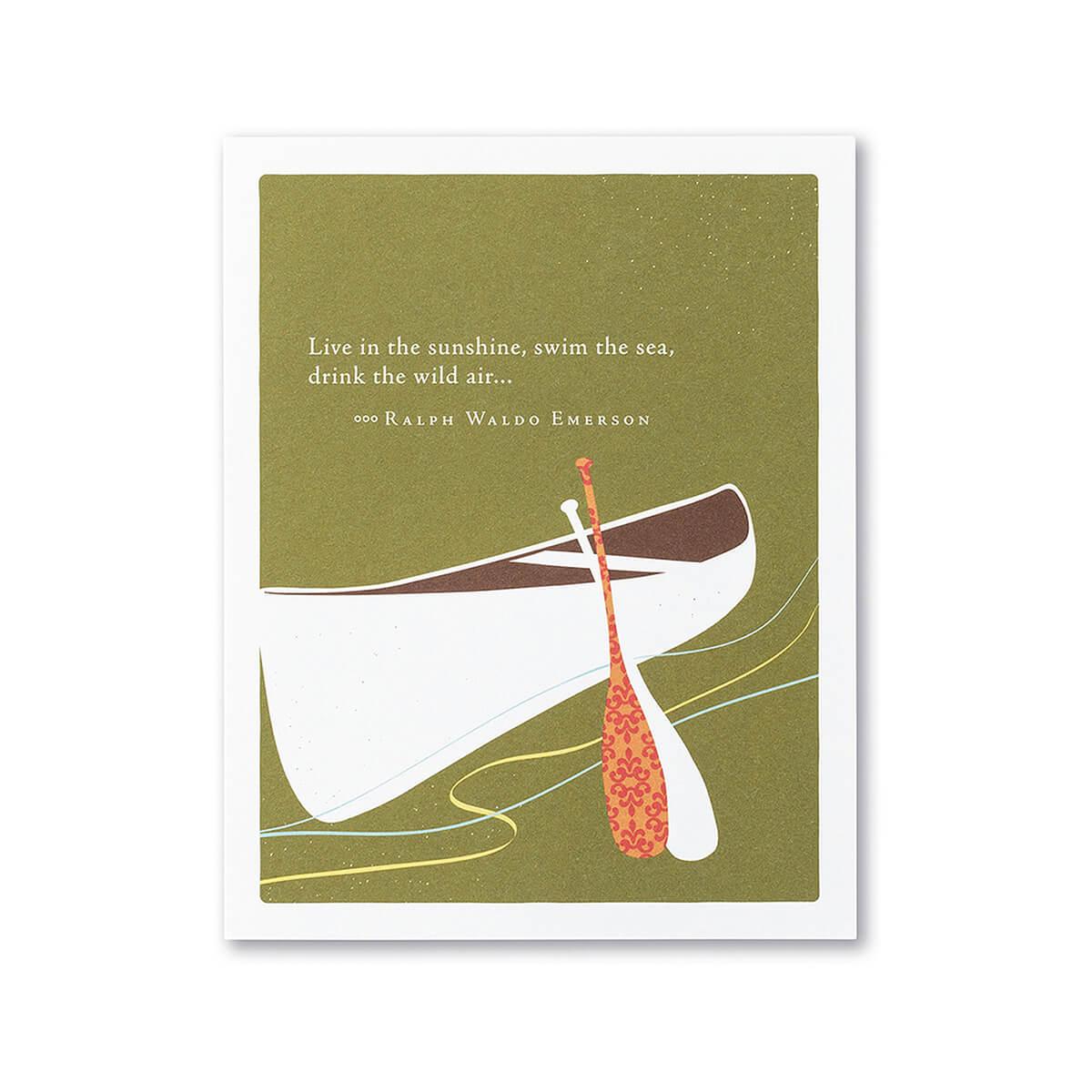Reads: Outside - "Live in the sunshine, swim the sea, drink the wild air... -Ralph Waldo Emerson"; Inside - "Enjoy the good life on your birthday."