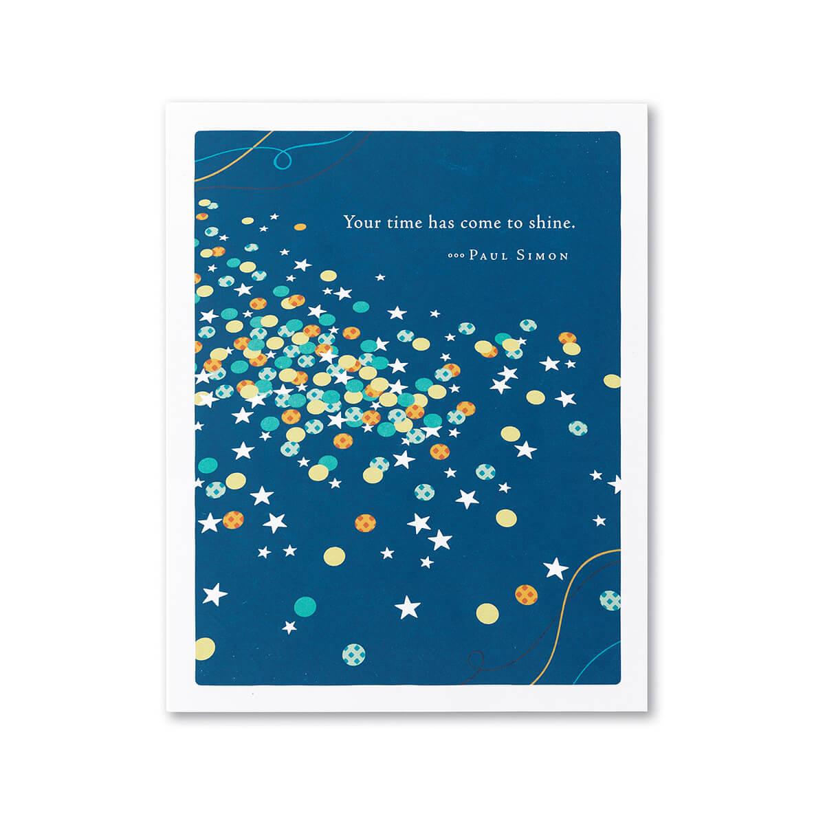 Reads: Outside - "Your time has come to shine. -Paul Simon"; Inside - "There’s so much to celebrate! Congratulations."