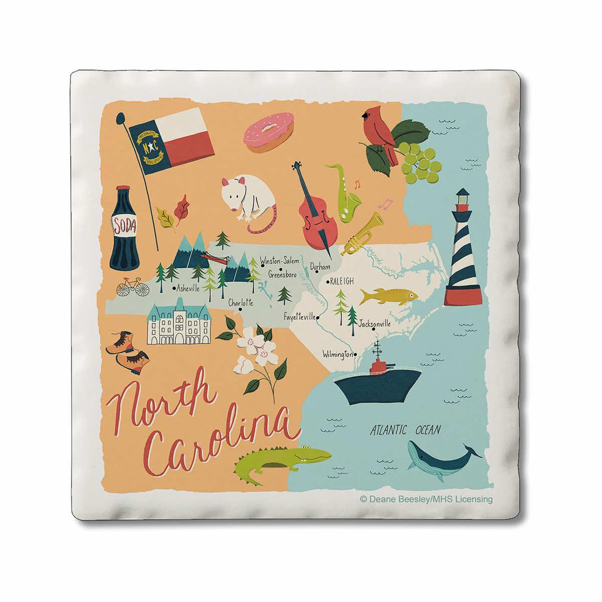 Put your love and support for the great state of North Carolina, and your favorite coffee table, on full display with the North Carolina Home State Coaster Set from Counter Art. This set of absorbent coasters is made from natural stoneware for absorbing drips and condensation and includes a cork backing to prevent scratches on your furniture. Besides being so useful, each coaster features a colorful image of the state of North Carolina and some of its well-known wonders.