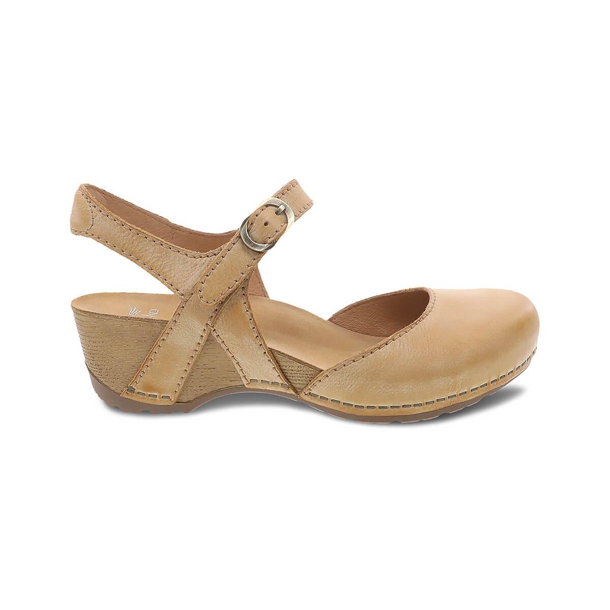 Transition effortlessly into spring fashion with the Women's Tiffani Shoes from Dansko! These beautiful burnished leather shoes have a closed toe and an open back, plus a sleek, adjustable ankle strap. The low heel gives these stunning shoes plenty of flirty, feminine flair, and a neutral color palette will pair perfectly with anything in your warm-weather wardrobe. Combine the cuteness of these heeled shoes with all-day comfort to get APMA-awarded footwear that promotes good foot health while elevating your outfits to the next level. Simply strap on these gorgeous shoes and step out in ultimate style!