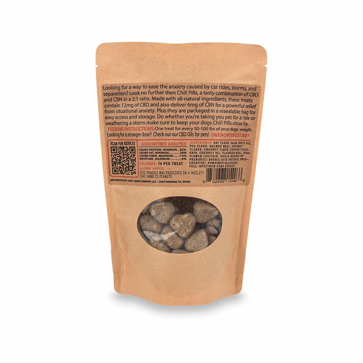 When your big dog needs big relief, look no further than the 5-Ounce Chill Pills Extra Strength CBD Dog Treats from Dr. Know's! These incredibly tasty and incredibly relaxing pet treats contain approximately 12 milligrams of full-spectrum CBD oil that will help ease situational anxiety in your dog. Car rides, storms, the vet, or separation got your canine on edge? Give them one treat per 50-90 pounds twice a day and be amazed at the difference in their mood! These dog treats are made in the USA to be a true lifesaver for any fur parent.