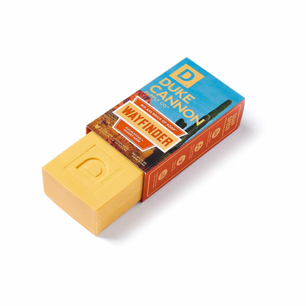 Get lost in the fantastic scent of Wayfinder Soap from Duke Cannon! This big brick of soap is three times the size of other, common bars, with triple-milled quality that keeps you clean and smells amazing. Scented like a journey through the high desert, better known as eucalyptus and desert sage, you'll love the way you feel after washing with this American-made soap!
