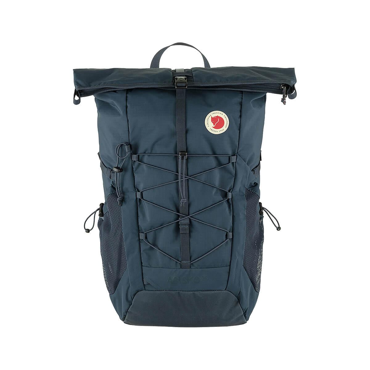 The Abisko Hike Foldsack Backpack from Fjällräven is a versatile and lightweight 25L backpack, perfect for day hikes and traveling. Made from 100% recycled nylon, this backpack has a fold-over, zippered closure that is secured with a plastic side release buckle. The fold-over closure is easy to use and can provide 4-5 liters of extra pack space or a spot to secure a sleeping mat or other longer items. There is a zippered pocket hidden under the fold. Fixed back panel system with ventilating air mesh on the back and shoulder straps; the adjustable chest strap and hip strap are both removable. Sleeve pocket and zippered pocket inside and two oversized side pockets on the outside. Attachment on the front for a hiking pole or ice axe. Bungy cord on the front panel. If you’re looking for a highly functional backpack then look no further. Abisko Hike Foldsack has got all the functionality needed for everyday outdoor life.