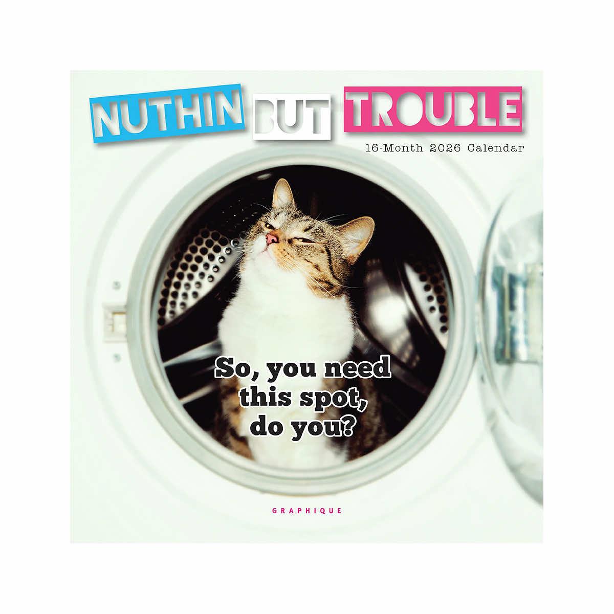 The Nuthin' But Trouble 2026 Mini Calendar from Graphique is the purr-fect way to plan out your year! This mini calendar gives you the option to keep track of important dates. Great for at home or in the office, the feline humor brings a smile to cat lovers as they organize their year and add events to specific dates. The 4-month preview offers the chance to plan ahead. This mini calendar includes public and culturally significant holidays. Enjoy the humor of each month's graphic and welcome in 2026 with a mini calendar that is the cat's meow!