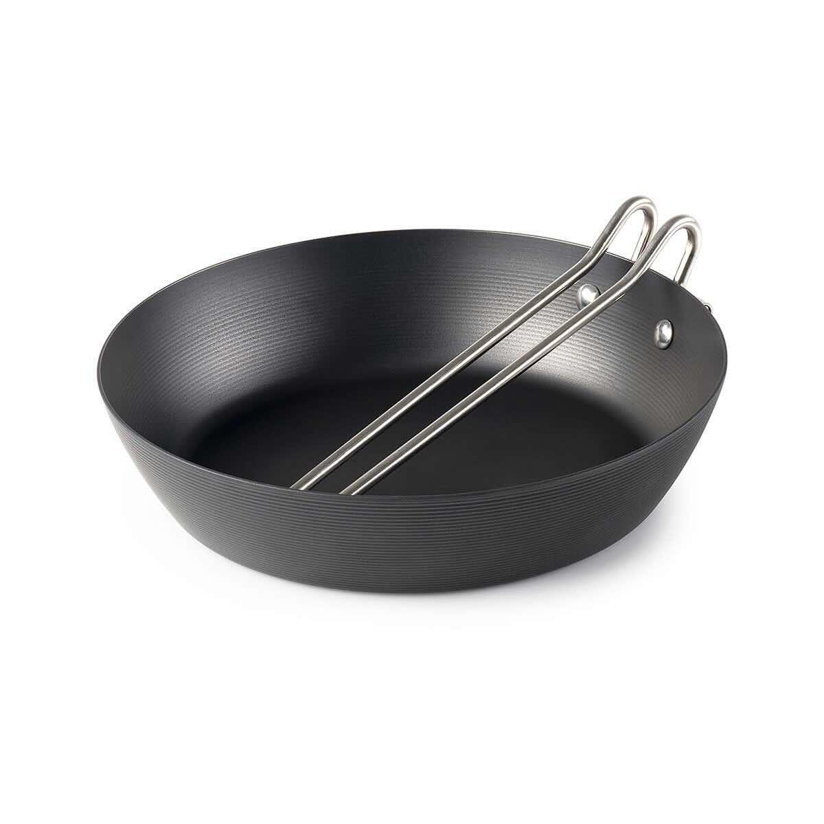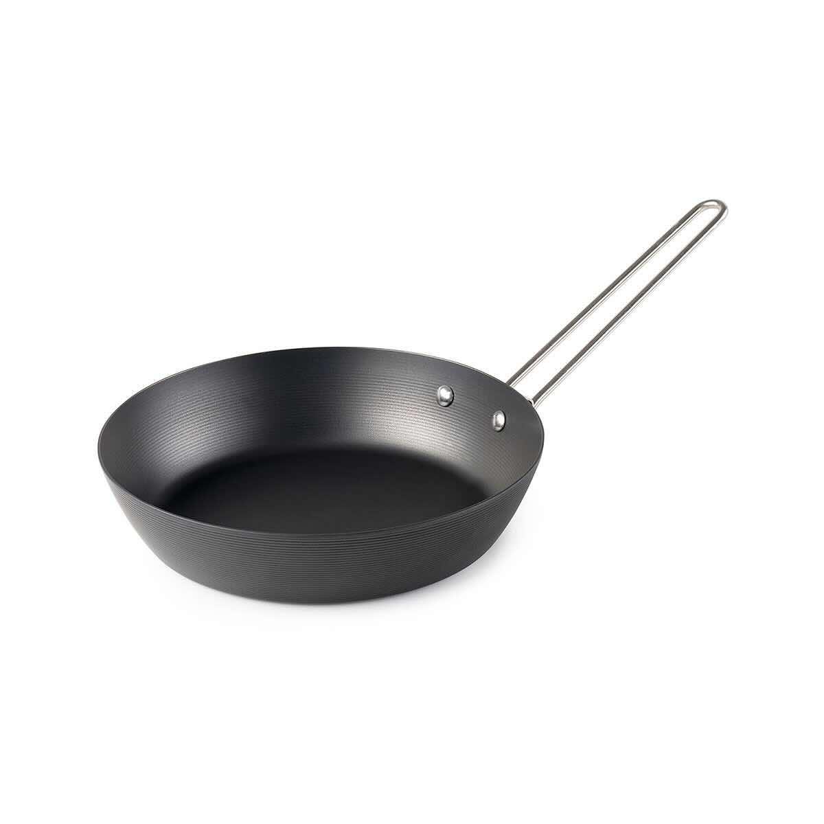 The 8-inch Carbon Steel Frypan from GSI Outdoors offers versatility for car camping, campsites, tailgates, and trekking! It is designed with ultra-hard heat treatment for improved seasoning and durability. This frypan features GSI's SureLock folding handle, which provides a sturdy, stable grip over the stovetop or grill and conveniently folds into the pan for storage and transport.