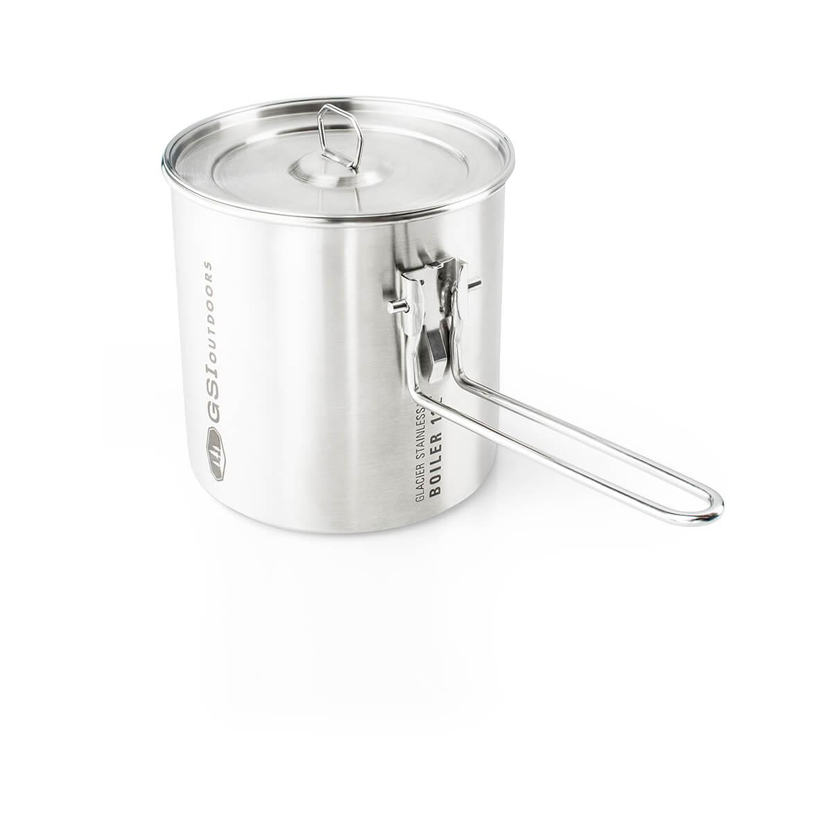 Reflect on the Glacier Stainless Boiler, the unbelievably rugged backpacking basic that's anything but. Thanks to Glacier Stainless steel fire-proof, rust-proof, scout-proof construction, this boiler can really take the heat. And with handy details like a folding, locking handle, helpful graduations and a novel niche for nesting a stove and fuel canister, this is one pot that will eat up the backcountry and still shine.