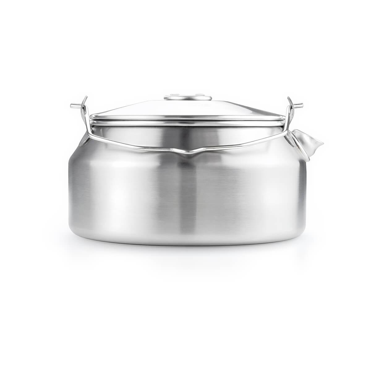 Glacier Stainless Tea Kettle is for family campers and backpackers who demand clean materials and durability in a traditional kettle design.