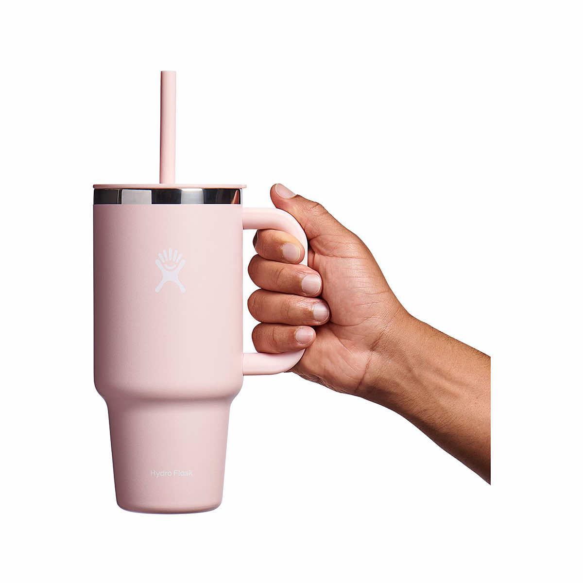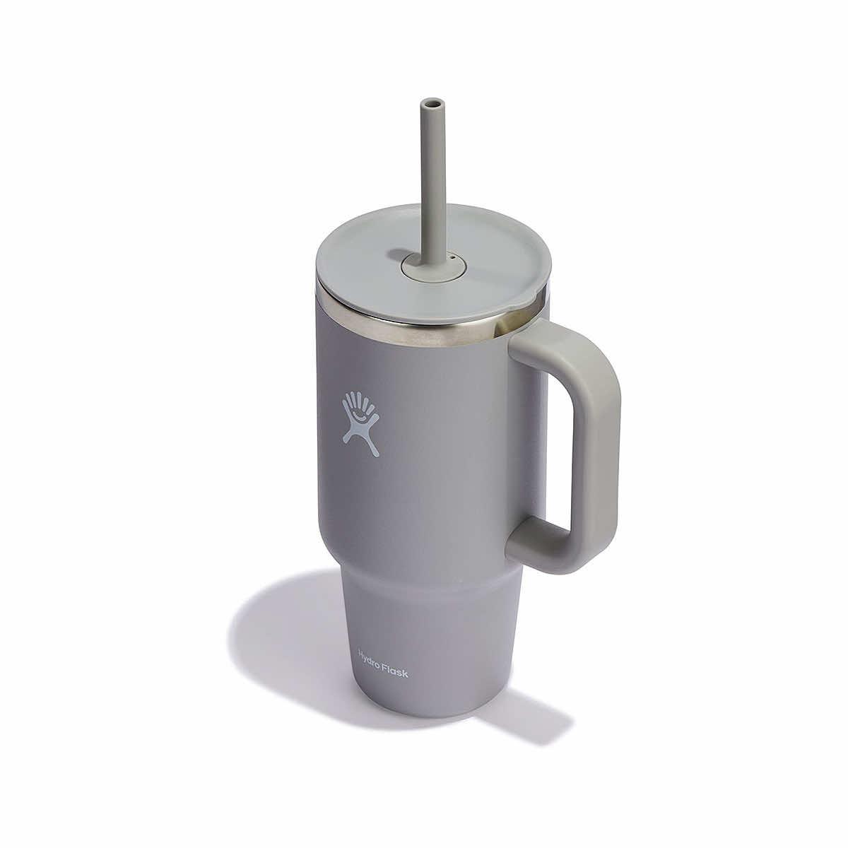 The new 32-ounce All Around Travel Tumbler from Hydro Flask is here to hydrate more and refill less. A very comfortable, extremely durable handle takes it to the next level, and the large size can go anywhere, even fitting most cupholders. TempShield® double-wall insulation ensures cold stays cold, and the flexible straw is easy to sip any which way. Made with 18/8 pro-grade stainless steel for durability, pure taste, and no flavor transfer, and designed with a Color Last powder coat that is durable, sweat-free, and colorful. The thirst is real, so stay hydrated with your new favorite 32-ounce All Around Travel Tumbler.