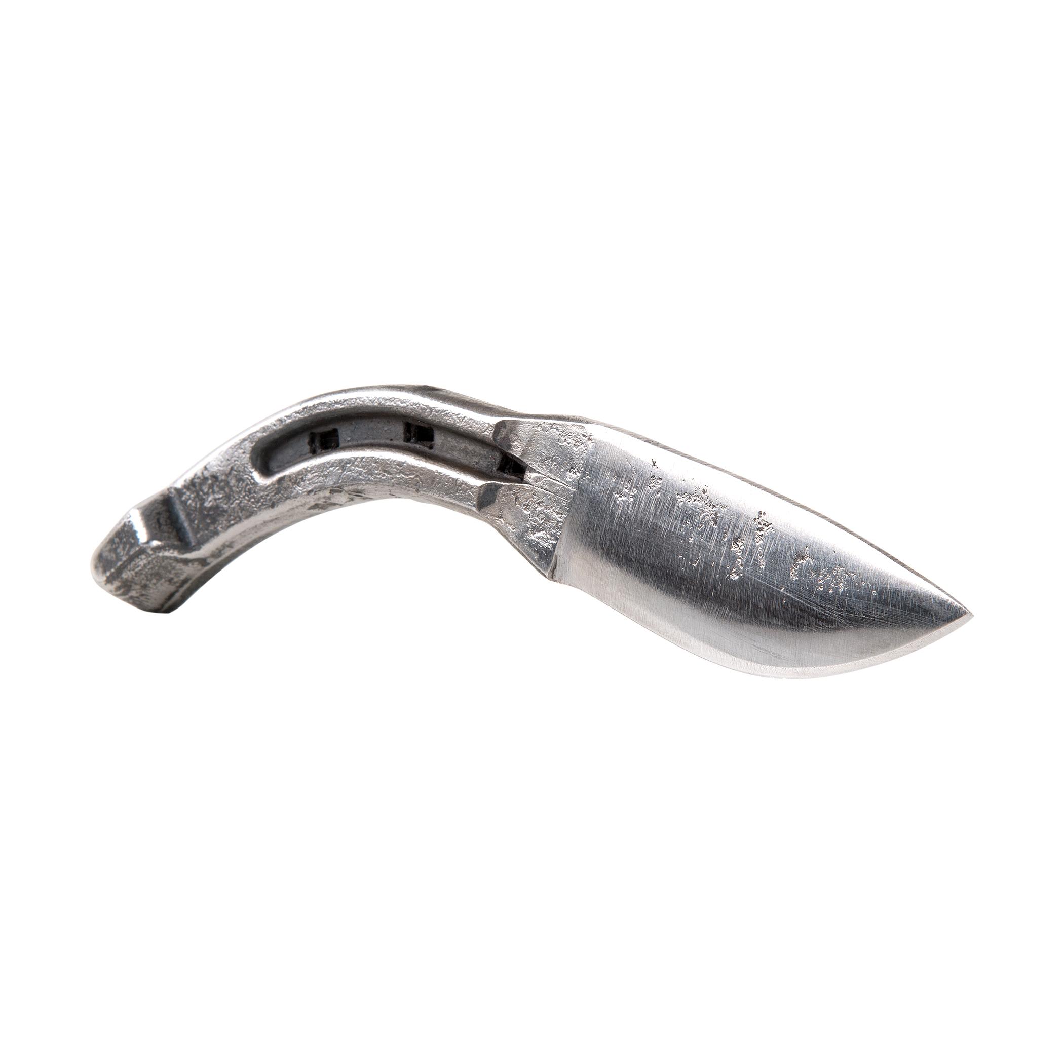 The Large Horseshoe Knife by Iron Mountain Metal Works was crafted so you can make your own luck! Every part of this inventive knife is handmade in the USA, from the blade to the premium cowhide leather sheath. The end of the horseshoe has been hammered out into a fixed blade, but the curved handle still resembles the original shoe, so every knife carries the unique markings of both excellent workmanship and ingenious design.