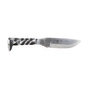 All aboard for the Large Railroad Spike Knife! Every part of this inventive knife is handmade in the USA, from the blade to the premium cowhide leather sheath. The end of the railroad spike has been hammered out into a fixed blade, but the spiraled body and nail tip remain the same, so that every knife carries the unique markings of excellent workmanship.