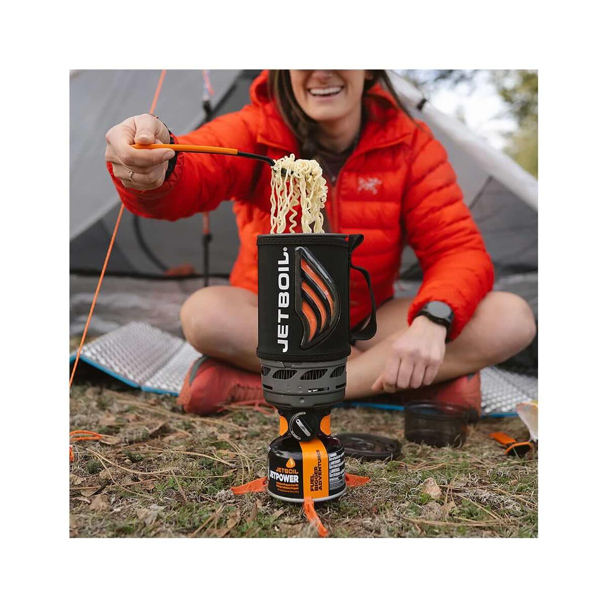 With new and improved features, you'll enjoy blistering fast boil times with the Flash 1.0L Fast Boil System from Jetboil at the campsite to the backcountry. The iconic FluxRing technology allows the Flash to heat with extremely high efficiency, which consumes less fuel, while the new turn-and-click igniter and a color-change heat indicator let you know when it's boiling. Boil water in a lightning-fast 120 seconds to enjoy your morning cup of coffee or dehydrated meals with less waiting. The new colored grip zone provides easy and intuitive handling. When you are done using it, everything packs neatly into the cooking cup, saving pack space and keeping your gear organized. From coffee breaks to multi-day meal times, the Flash 1.0L Fast Boil System delivers reliable function day in and day out!