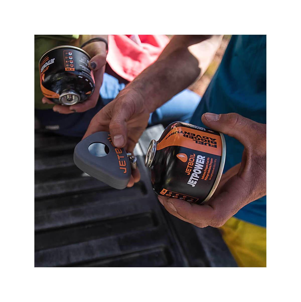 Check the fuel level of any Jetboil canister before you leave the house with the Jetboil JetGauge. An easy-to-read digital output accurately displays a canister's fuel content, so you'll know whether new canisters are necessary for the trip. The JetGauge offers three settings to accommodate 100-gram, 230-gram, and 450-gram JetPower canisters. Plan ahead by determining how much fuel you will need for each meal using Jetboil's convenient usage guide. Although it's engineered for Jetboil canisters, the JetGauge is compatible with most isobutane/propane backpacking fuel canisters.