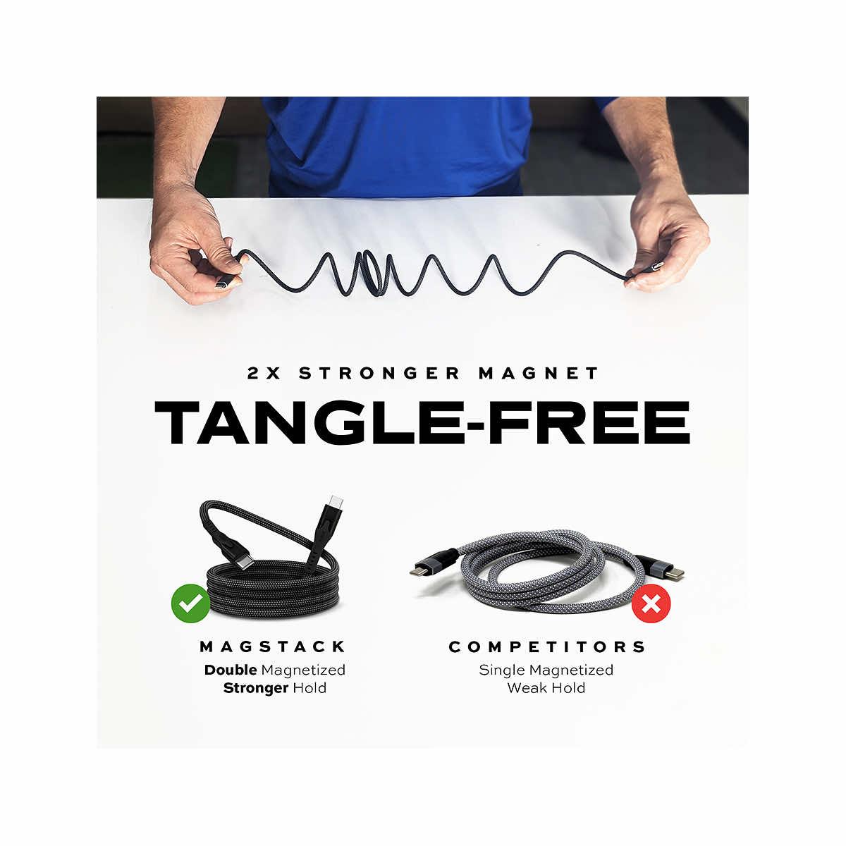 Make cable management easy and organized with the Keysmart USB-C to USB-C MagStack Cable. This 3-foot cable provides a tangle-fee design that uses a magnetic function to keep it secure and manageable. Declutter your desk or cable drawer to reduce a tangled mess while enjoying safe and powerful charging to your devices. The reinforced nylon braid offers a durable cable that you can use over and over again. The magnetic cable won't damage your phone, computer, or credit cards, but it is powerful enough to create a mess-free cable that's easy to organize.