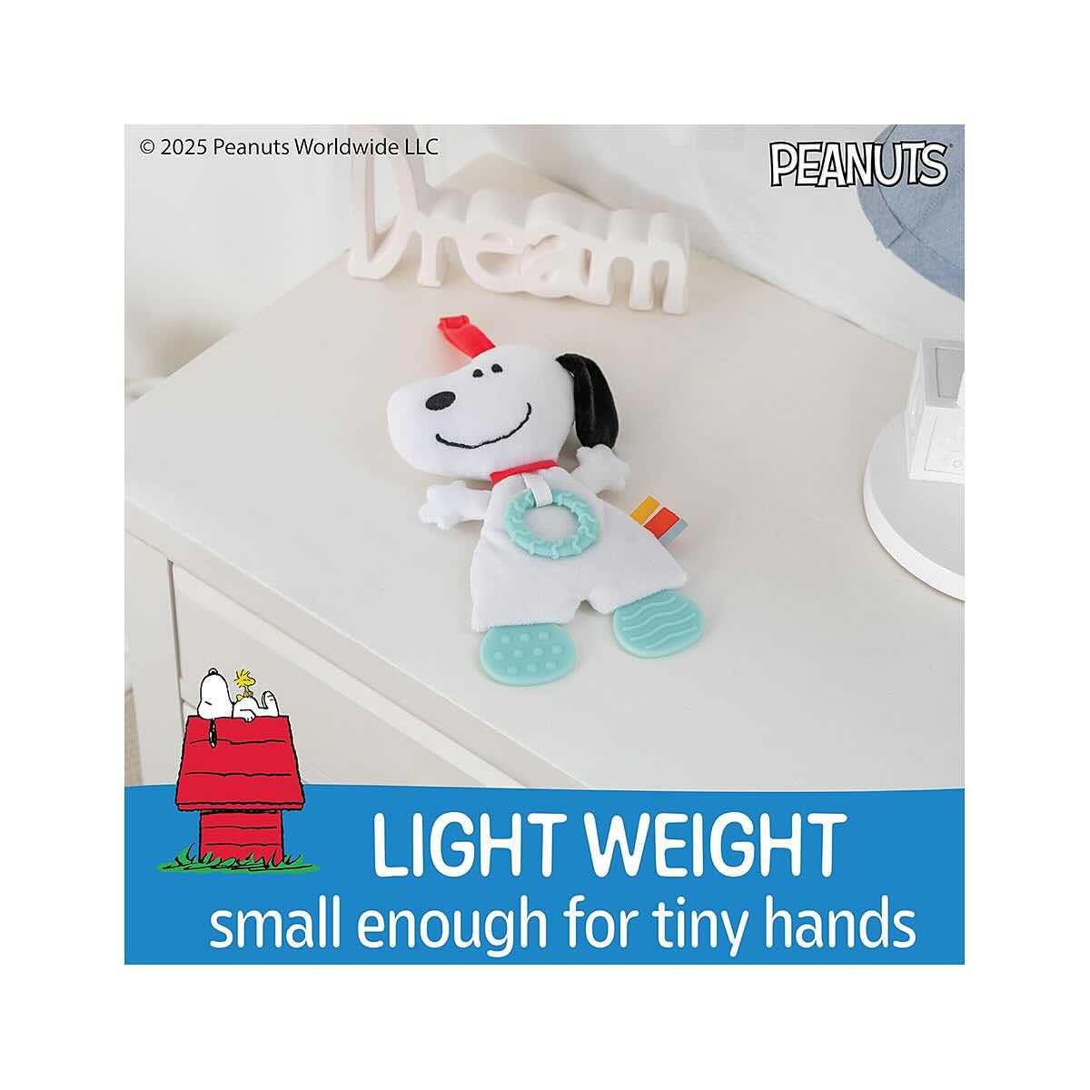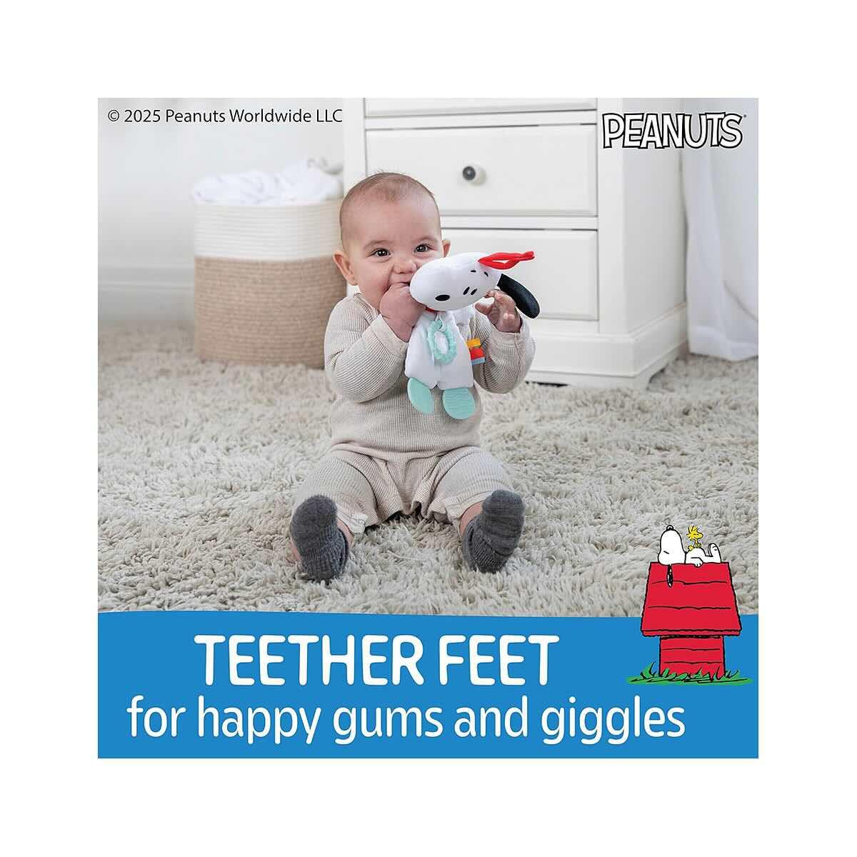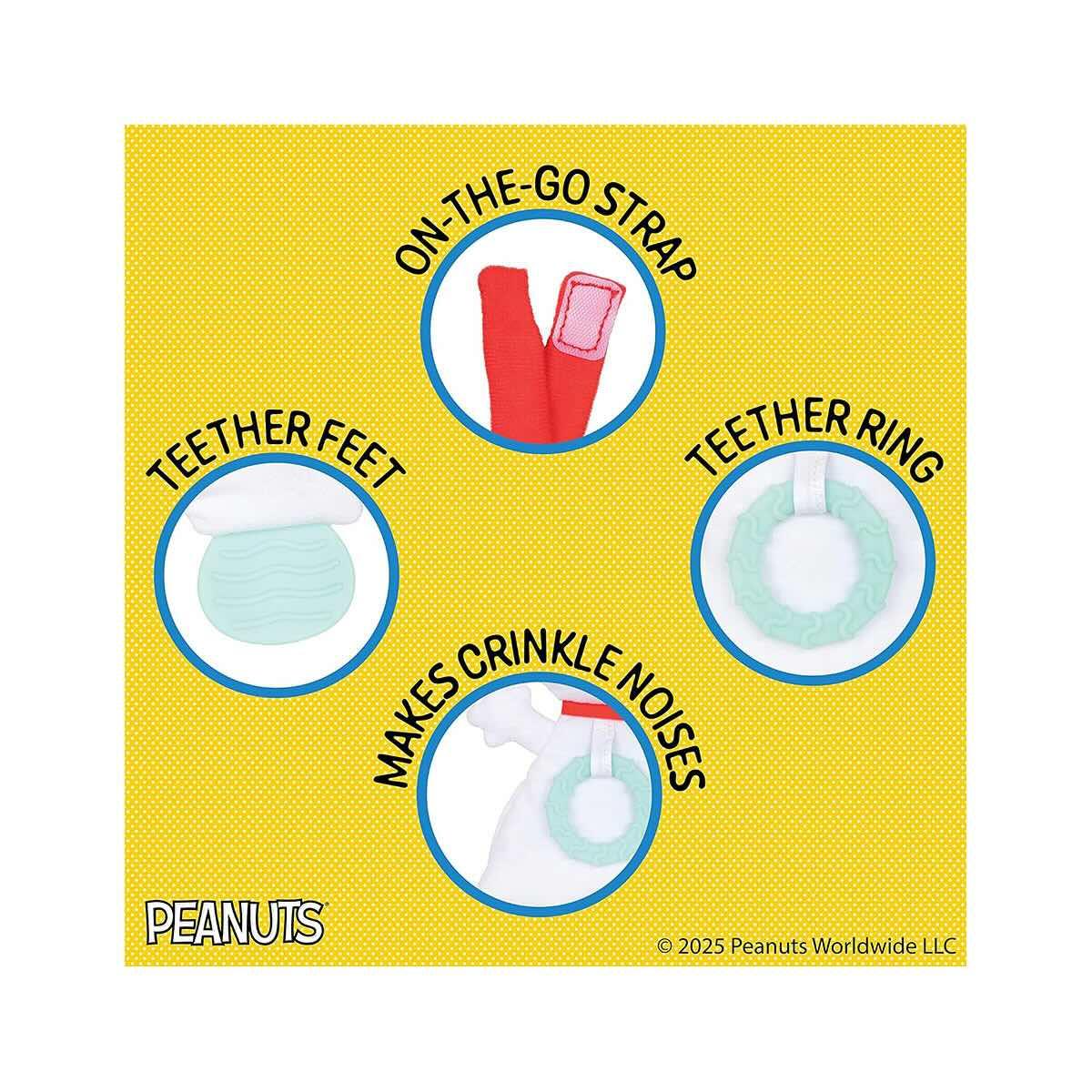 Your little one will love the Snoopy Baby Sensory Crinkle Blanket Toy from Kids Preferred! From his embroidered smile to the perfectly textured details, this delightful baby toy is just what the doctor ordered for soothing your infant. An included stroller loop and spot-cleanable materials make this charming lovey toy ideal for travel. Give your little peanut a Peanut to love!