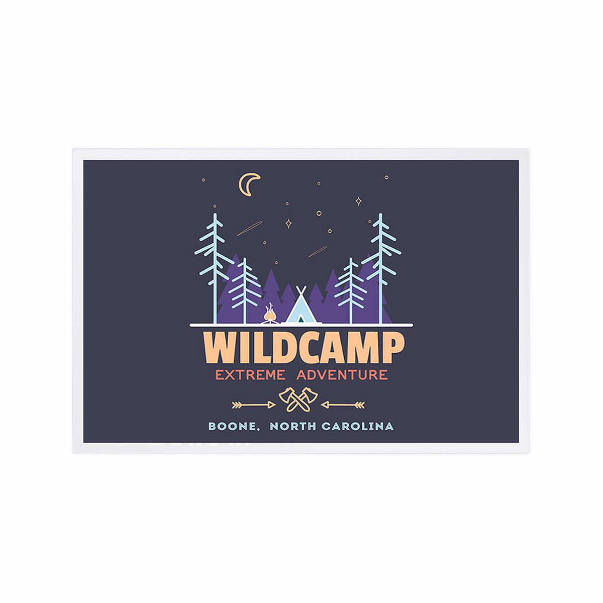 After a stay at a local primitive camping spot in Boone, North Carolina, share your experience with this Boone Wildcamp Extreme Adventure Postcard from Lantern Press. Printed on recycled paper with non-toxic ink, this artful postcard measures 6 by 4 inches and features a colorful image of a camping spot among nature and a night sky.